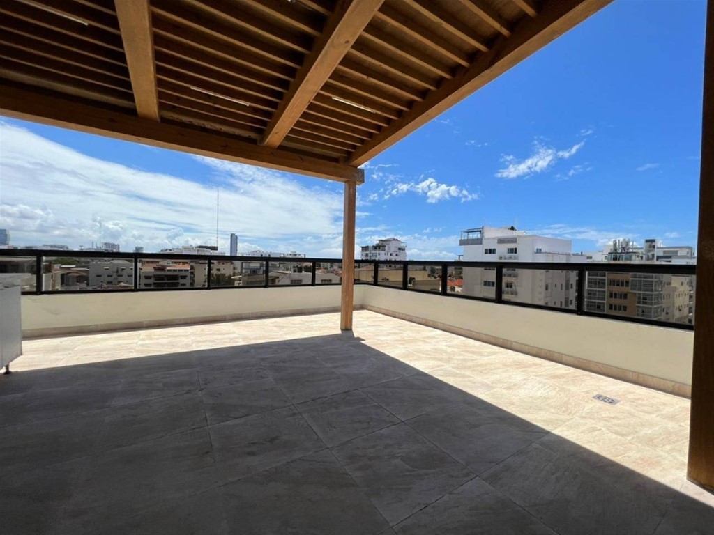 Penthouse en venta y alquiler en mirador sur Piso 5 y 6 3 habitaciones c/u con su baño y walking closet, principal con 2 W/C. 2 medio baño de visita Estudio Sala Cocina abierta Comedor Habitación de servicio con baño Área de lavado Terraza privada con kitchenette 4 parqueos paralelos techados Amenidades Locker 2 apartamentos por nivel Ascensor Planta full Lobby Seguridad 24/7 Cámaras de seguridad Gas común Portones eléctricos Gimnasio Terraza común con bbq Mantenimiento incluido Precio de alquiler US$2,000 Precio de venta US$430,000 Mantenimiento RD$12,000 Información Sarah Amaro 809-931-4747
