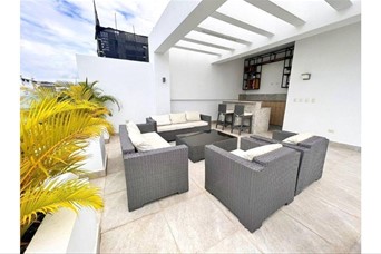 Hermoso alquiler amueblado en Mirador Sur 162 mts Piso 2 2 habitaciones 3 baños Sala Comedor Desayunador Estar familiar Cocina Closet de ropa blanca Terraza Locker Balcón Área de lavado Habitación de servicio 2 parqueos paralelos y techados Terminaciones Pisos en Porcelanato Madera preciosa Tope de cocina en Granito Cornisas en Sheet Rock Amenidades y características de la torre Portón eléctrico Ascensor Luz 24 hrs Cámaras de seguridad Planta full Área de juegos Piscina Lobby climatizado Terraza común Gas común Pozo Cisterna Conserje Precio de alquiler US$2000 TOM. G.