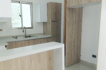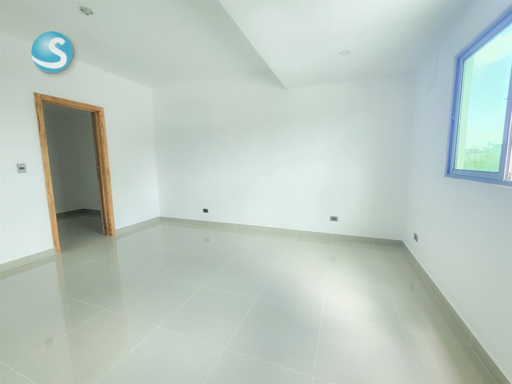 Apartamento en venta ,nuevo a estrenar en la zona del Mirador Sur, con área social y cercano a la 27 febrero, Downtown Center y zonas aledañas. Cuenta con 140 m² netos (164m² con parqueos) 3 habitaciones, cada una con sus baños Baño para visitas Sala Comedor Balcón Cocina modular con desayunador Estar familiar Area de lavado y cuarto de servicio con baño. 2 parqueos techados La torre cuenta con: Ascensor Planta eléctrica Gimnasio Area social amueblada Sistema contra incendios, entre otros Precio US$ 280,000