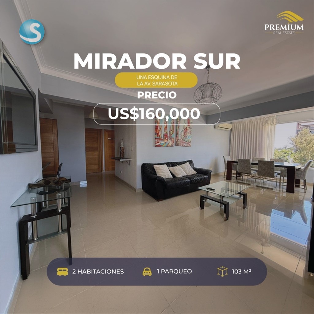 Mirador Sur, a una esquina de la Av. Sarasota 4to Piso (No tiene ascensor) 103 mts 2 Habitaciones 2 Baños Sala/Comedor Cocina Área de lavado 1 Parqueo Portón eléctrico Gas común Seguridad Precio de venta: US$160,000