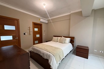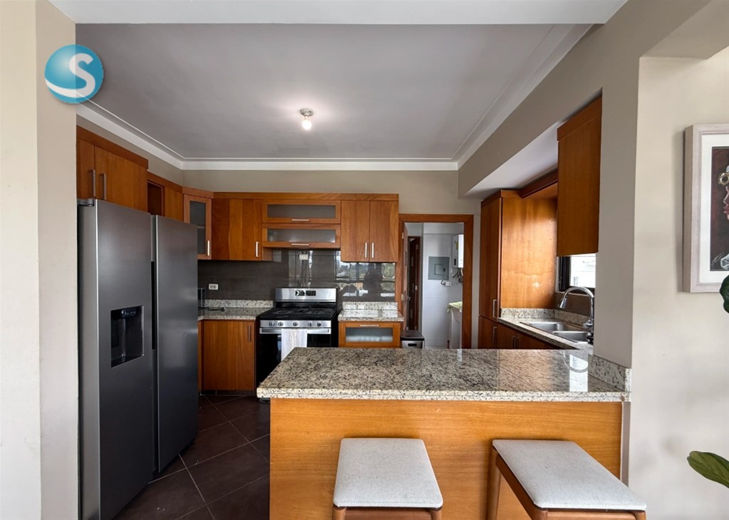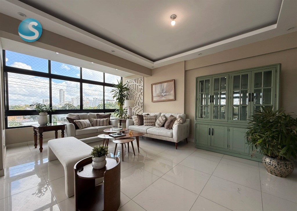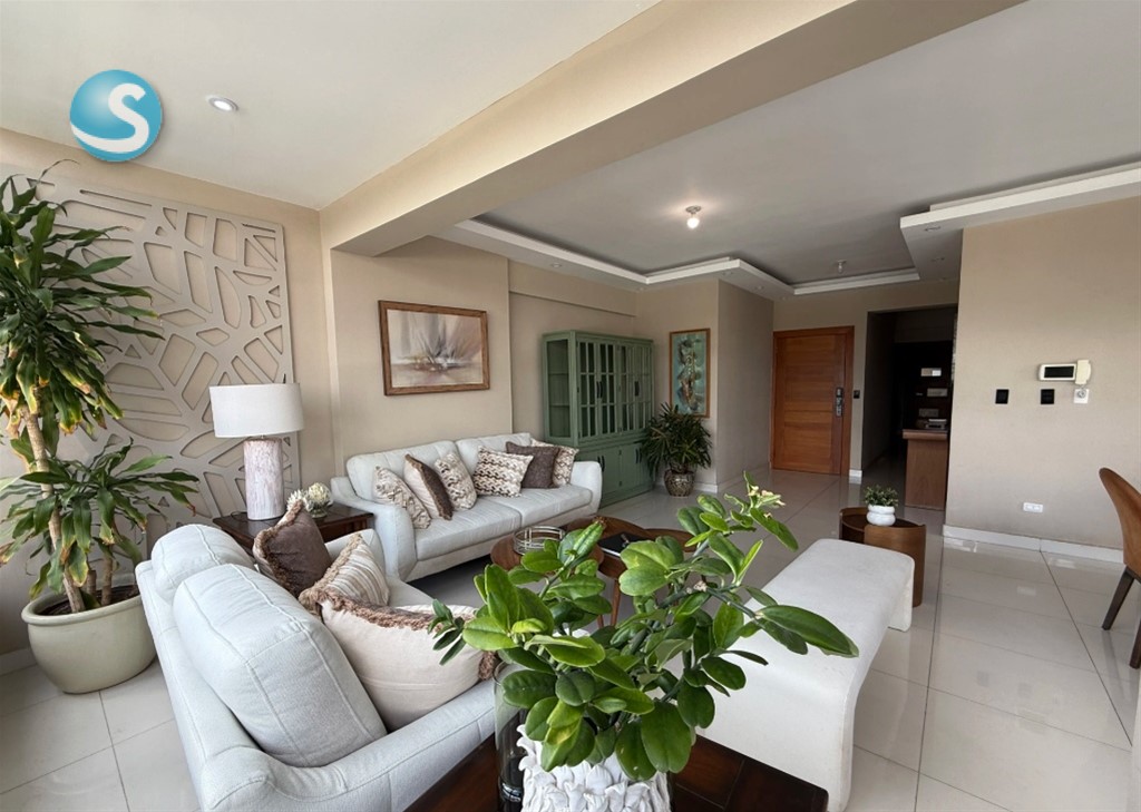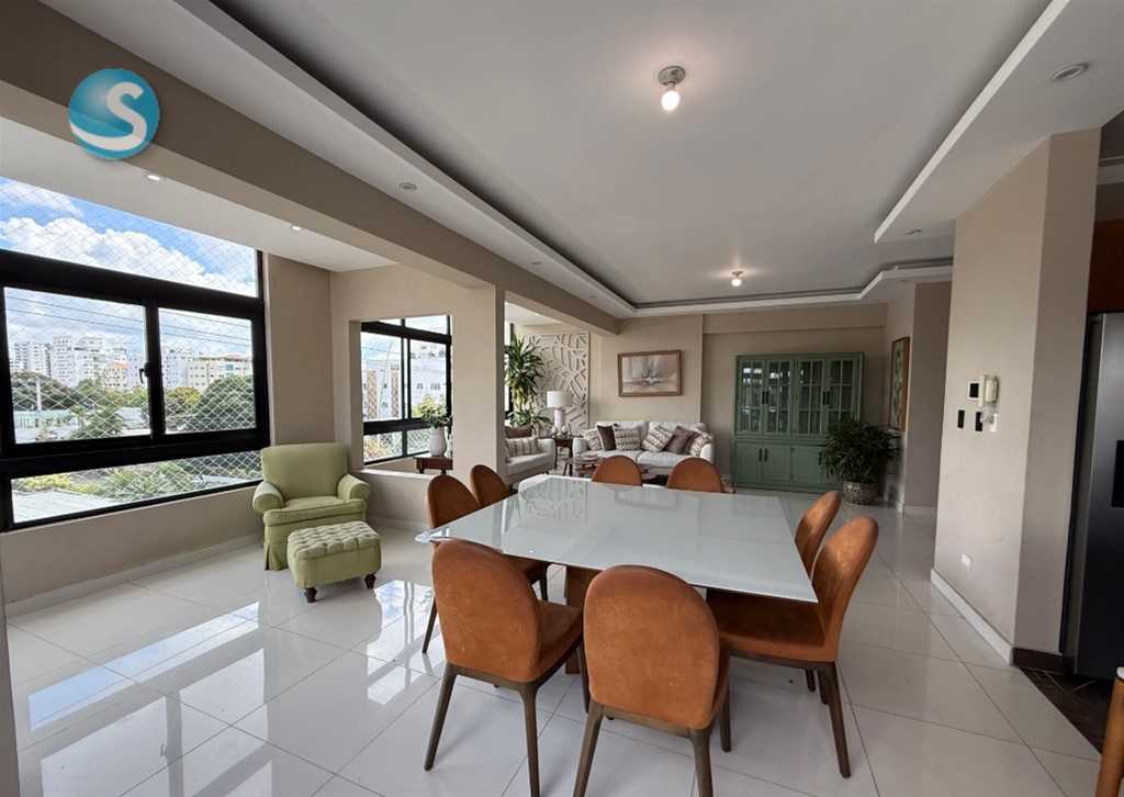 Descubre este exclusivo apartamento amueblado en Mirador Sur, una de las zonas residenciales más demandadas de Santo Domingo por su tranquilidad, conectividad y cercanía a Downtown Center, restaurantes, vías principales de conexión, el Parque Mirador Sur y Carol Morgan School. 165m2 neto, 3 habitaciones, cada una con baño, principal con wc, baño de visitas, sala y comedor integrados, estar, cocina abierta con ventilación natural y desayunador, area de servicio, habitación de servicio con baño,2 parqueos techados. Area social: Terraza destechada, gimnasio equipado, area de niños. Facilidades: Lobby, ascensor, planta full, gas comun con medidor, porton electrico, conserjes, mantenimiento incluido. Una excelente opción para familias, ejecutivos o clientes corporativos que buscan seguridad, comodidad y una ubicación envidiable en Mirador Sur. SOLO CLIENTES