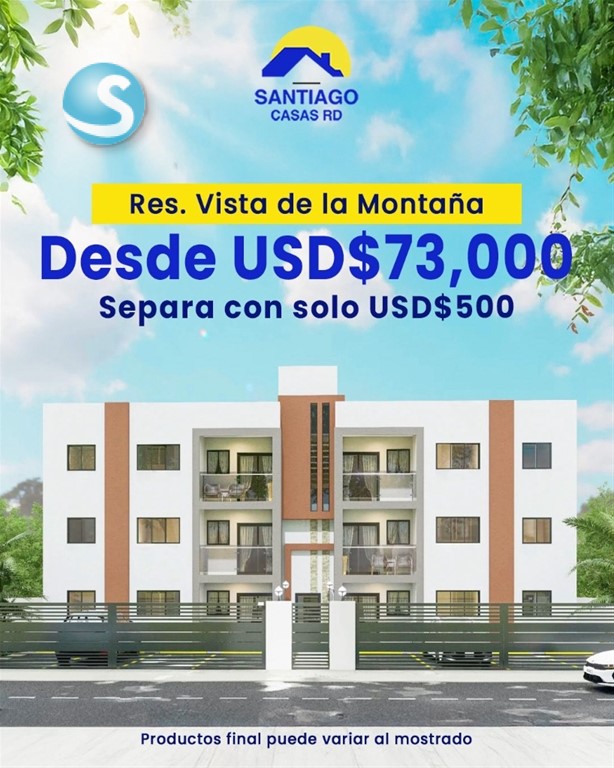 ?? Residencial Vista de la Montaña – Información General ?? Ubicación: Calle 8 casi esquina 5, Urb. Los Molinos (Paseo de los Choferes), Prolongación Padre Las Casas, Santiago. Zona tranquila, segura y con acceso rápido a comercios, escuelas y servicios. ??? Características del Proyecto Conjunto cerrado de 6 apartamentos 103.70 m² de construcción por unidad Entrega estimada: finales 2026 Portón automático y cámaras en áreas comunes ?? Distribución Sala Comedor Balcón Cocina con desayunador y despensa Área de lavado Clóset de ropa blanca Habitación principal con baño y walk-in closet 2 habitaciones secundarias Baño común ? Terminaciones Pisos en cerámica Madera sheet board hidrófugo o aluminio Cocina modular Ventanas corredizas 1 parqueo Preinstalación de A/C Tubería de agua potable en PE ?? Plan de Pago Separación: US$500 Inicial: 20% Financiamiento: 80% con el banco de su elección Planes de pago personalizados Mas información 829-420-5087 Fradery Ruiz
