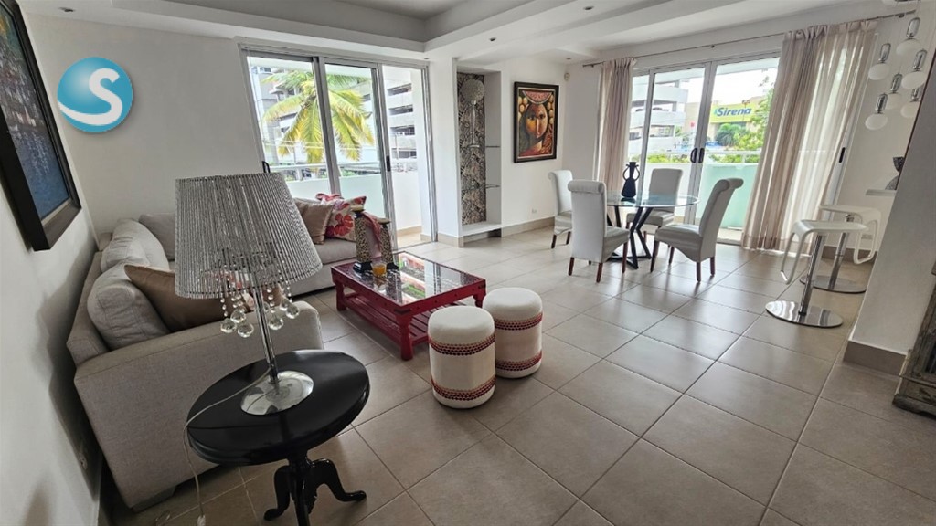 Apartamento amplio y claro con muy buen mobiliario en Piantini proximo a Blue Mall 2 habitaciones, 2.5 baños, balcón en L, sala, comedor, cocina con desayunador, área de lavado y cuarto de servicio, 135 mts netos, 2 parqueos techados, 2 ascensores, piscina y jacuzzi, gimnasio, lobby, terraza común con bar, área infantil. Precio US$1,800. incluye mantenimiento. Nota: no se aceptan mascotas. Mayor información o visitas: Victor Garcia - REALTOR® 809-258-6575 whatsapp 24/7