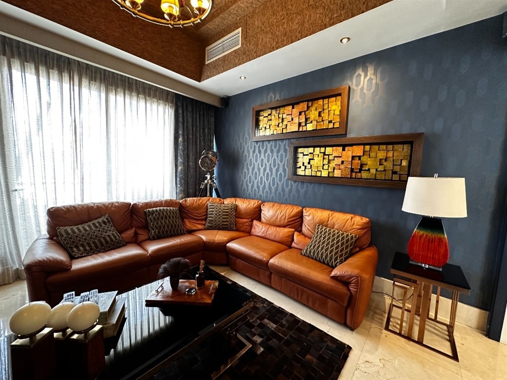 Apartamento elegante decorado finamente cumpliendo los estándares de calidad del buen gusto y la seguridad. Cuenta con 3 habitaciones con su baño y vestidor. Cocina caliente y cocina fria. Area de lavado con habitación de servicio y su baño Dos amplias salas recibidor comedor separado, frente a desayunador de cocina terraza techada privada con area de bar y bbq. Amplio Estudio , estar familiar, y su televisión y equipo de música. El Edificio a pocos metros de la Avenida Abraham Lincoln, en el centro de Piantini, con Terraza , Piscina, Gimnasio, Salon de ventos, area cerrada de niños. 3 parqueos del apartamento Ducto de basura locker