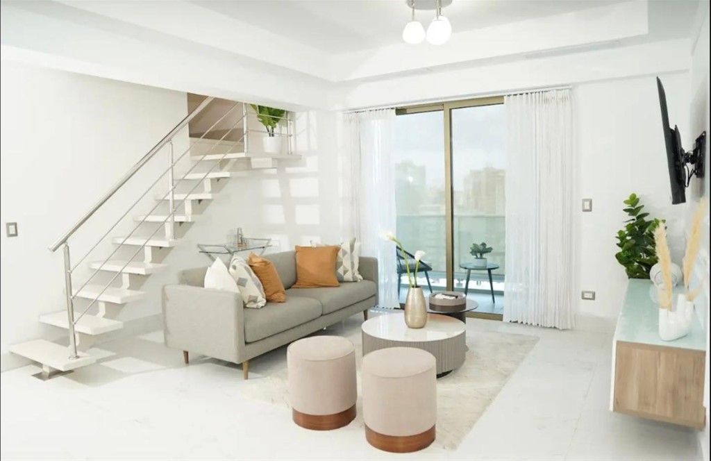 Piantini -Tipo Loft - Luxury Furnished a Estrenar!! 155 Metros Piso 12 Balcón 2 habitaciones 2.5 Baños Sala Comedor Cocina Área de lavado Cuarto de servicio 2 parqueos Amenidades: Lobby Gimnasio Cine Piscina Bbq Bar Salón de actividades Terrazas techadas y destechadas Alquiler Amueblado: US$ 3,500