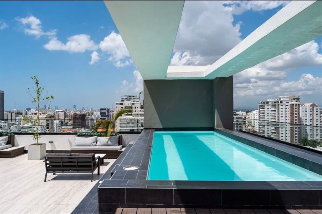 Piantini ?? 67Mts Piso 7 (1) Habitación (1.5) Baños Sala / Comedor Cocina Abierta Balcón 1 Parqueo Lobby amueblado 2 Escaleras 2 Ascensores Baños Comunes Gimnasio Equipado Sistema Seguridad Sistema Intercom Sistema Contraincendios Planta Full Sistema Eléctrico Terminaciones de Primera Área Social: Piscina Terraza Jardín Área infantil Gimnasio Salón Eventos Baños Comunes Precio de alquiler con Línea blanca US$950