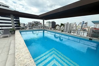 SERRALLÉS Precioso Apartamento en Moderna Torre con Espectaculares Areas Sociales en el Rooftop, a pasos de la Av. Lincoln. ALQUILER AMUEBLADO US$2,300 PISO ALTO CON VISTA A LA CIUDAD 129 metros 2 habitaciones 2.5 baños Sala Comedor Balcón frontal Cocina Área de lavado Cuarto de servicio 2 parqueos paralelos Amenidades: Piscina Gimnasio Sauna Terraza Amueblada Área de BBQ Área Infantil Salon Multiuso Amplio Lobby Amueblado Dos (2) Ascensores