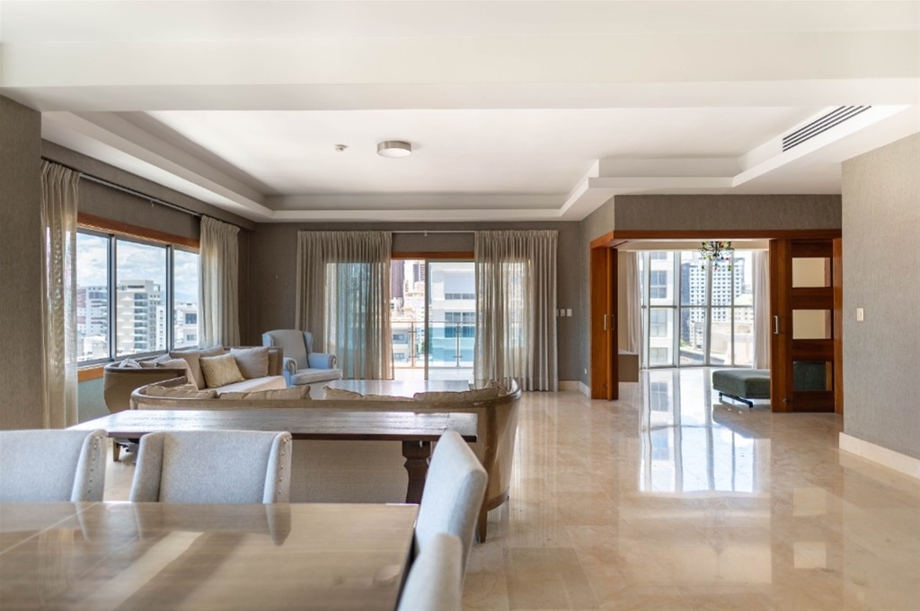 Moderno apartamento con excelente distribución y vista despejada, ubicado en exclusiva torre del sector Piantini Categoría: Apartamento 350 metros netos 3 Habitaciones, cada una con su baño y Walking Estudio Family Room Recibidor Balcón Amplia Área de lavado Habitación de servicio Pisos en Mármol 3 parqueos Locker 1 apartamento por nivel Sistema de detección de incendio, Alarma integrada Sistema de cableado estructurado Sistema de aspiradora central Pisos en mármol Piso alto AMENIDADES DE LA TORRE: Lobby Amueblado y Climatizado Gimnasio Piscina Salón Multiusos Salón tipo Lounge Terraza Destechada Seguridad 24/7 Precio de Venta: US$780,000