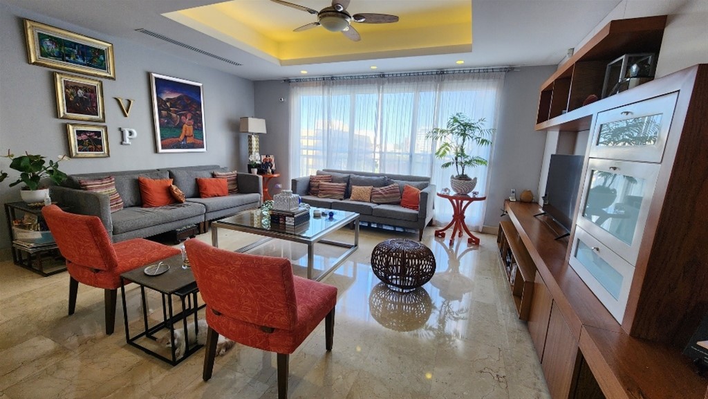 CARACTERISITICAS DEL APARTAMENTO - Nivel 4 - 214 mt2 neto - 2 habitaciones, cada una con su baño y principal con 2 walk-in closet - Baño de visita - Recibidor - Sala - Estar - Comedor - Cocina caliente - Cocina fría con puertas corredizas para integrar a estar - Área de lavado - Habitación de servicio con baño y closet - 2 amplios parqueos techados a nivel de calle con 14.30 mt2 cada uno TERMINACIONES DEL APARTAMENTO - Pisos en mármol - Puertas y cocina en madera preciosa - Ventanas de doble acristalamiento con shutters - Closet principal en Cedro - Techos en sheetrock - Tope de cocina en Cuarzo - Divisiones en Densglass (fácil de modificar) CARACTERISTICAS Y AMENIDADES DE LA TORRE - 15 apartamentos en total - 2 apartamentos por nivel del 2 al 7 y 1 por nivel del 8 al 10 - Área social destechada en rooftop en niveles 11 y 12 - Área BBQ con parrilla y estufa en nivel 11 - Salón climatizado tipo lounge con bar, pantalla sala y comedor en nivel 11 - Amplias terrazas destechadas en niveles 11 y 12 SERVICIOS Y FACILIDADES DE LA TORRE - Lobby climatizado - Portón eléctrico - Planta eléctrica - Vigilancia 24 horas - 2 ascensores - Cámaras de seguridad - Shutters en área social Mantenimiento mensual RD$20,000