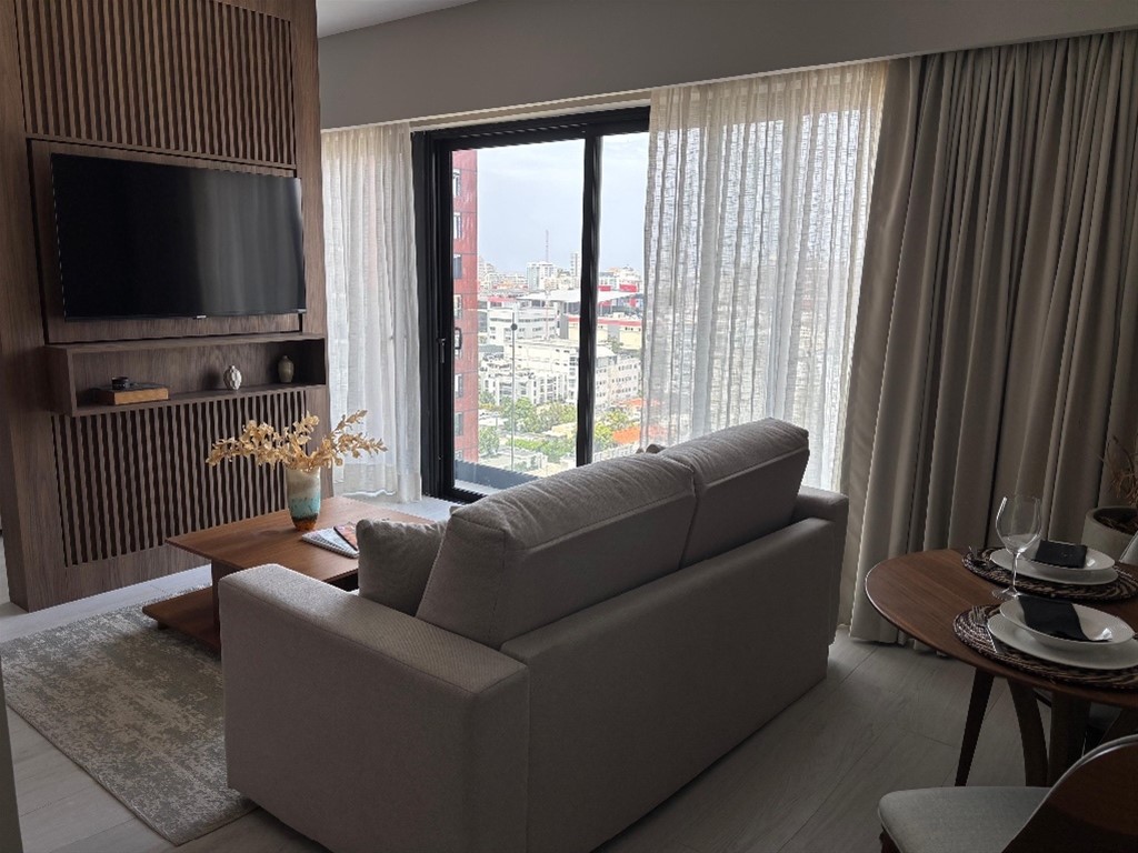 Piantini 1 hab /studio 88 metros Nivel 13 1.5 baños ?? Balconnette Sala Comedor Cocina 1 parqueo Área social Rooftop Piscina ?? Sauna Gym Terraza Salón de eventos $2,000 Amueblado