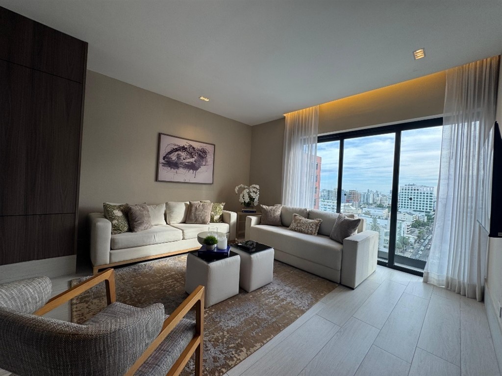 Piantini - Piso Alto 88 Metros netos Piso 13 Balcón 1 habitacion con balcón 1.5 baños Sala Comedor Cocina Balconcette Área de lavado 1 parqueo Área social : Piscina Gym Salón cerrado Sauna Precio de Alquiler Amueblado US$1,800