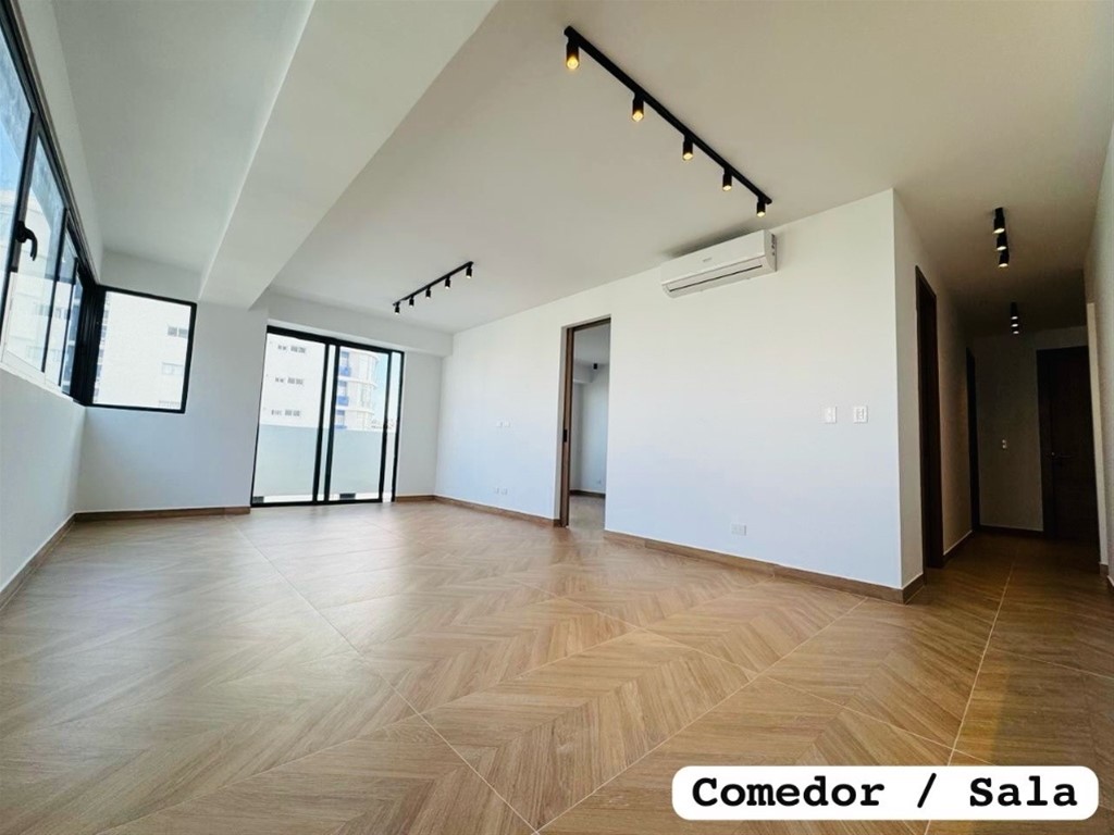 Apto. Nuevo Con 118 metros Dos habs. 2.5 baños Balcones Sala Comedor Cocina Cuarto de Servicio Áreas sociales con: Piscina Jacuzzi Gimnasio Sauna Salón para yoga Área de niños Cigar Lounge Línea blanca incluida: Lavadora Secadora Horno Mini split s inverter Estufa Nevera Dishwasher Terminación de primera Precio de alquiler: US2,200 negociable