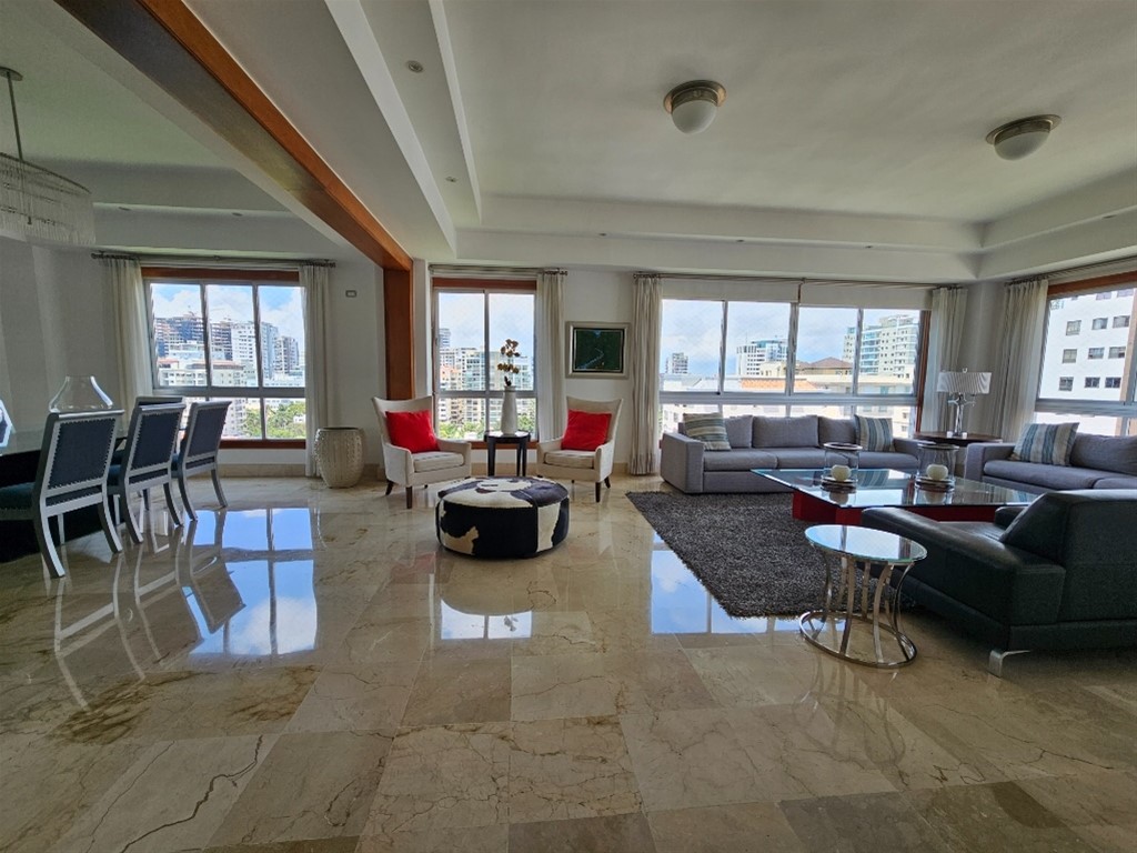 Alquilo amplio apartamento amueblado en piso alto 1 apartamento por nivel pocas familias 340 mts 3 habitaciones con sus baños y wc forrados en cedro con su baño recibidor sala amplia comedor estudio cocina estar familiar en medio de las habitaciones amplia area de lavado y habitación de servicio pisos en marmol 3 parqueos locker lobby gym