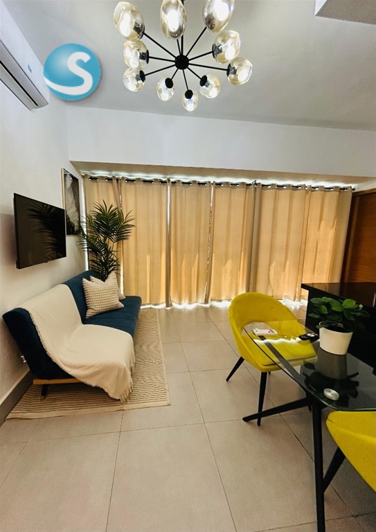 Se alquila apartamento totalmente amueblado en Piantini •Piso 8 •1 habitación con Walking Clóset y su baño •1/2 baño de visitas •Sala-Comedor •Balconette •Área de lavado •1 Parqueo •2 ascensores •Lobby de lujo •Piscina •Terraza destechada Precio de alquiler: US$1,100.00 (Incluyendo mantenimiento)