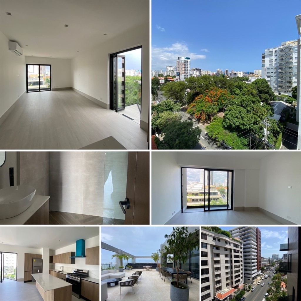 Sector Piantini Apartamento nuevo. Alquiler con línea blanca. 2 habitaciones con sus baños sala balcones en la sala, y las habitaciones. Vista muy agradable. 3 aires inverter Torre moderna Lobby, Áreas sociales con piscina en el techo Varios salones Gym / Sauna 3 Ascensores Alquiler con mantenimiento y línea blanca incluida en US$1,800