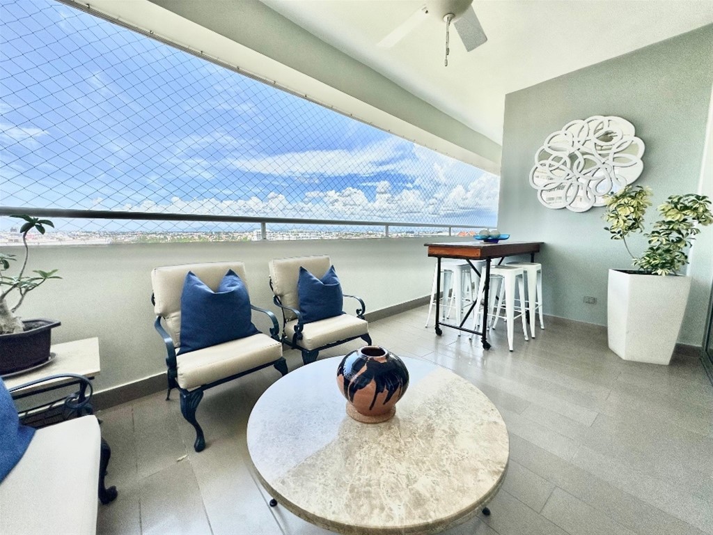 Apartamento amueblado a solo pasos de Blue Mall. mb-ra Piantini 180 m2 netos 3 hab 3.5 baños Sala Comedor Cocina Balcón tipo terraza Área de lavado Cuarto de servicio 2 parqueos Recibidor Amenidades de la torre: Lobby 2 ascensores Gimnasio Piscina Terraza techada Estación de choferes 2 aptos por piso Mantenimiento y gas incluido