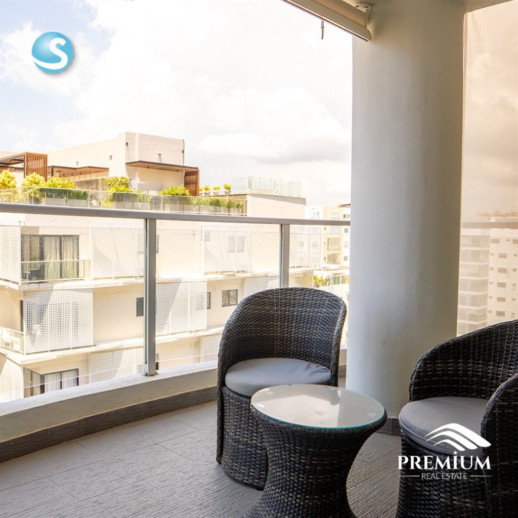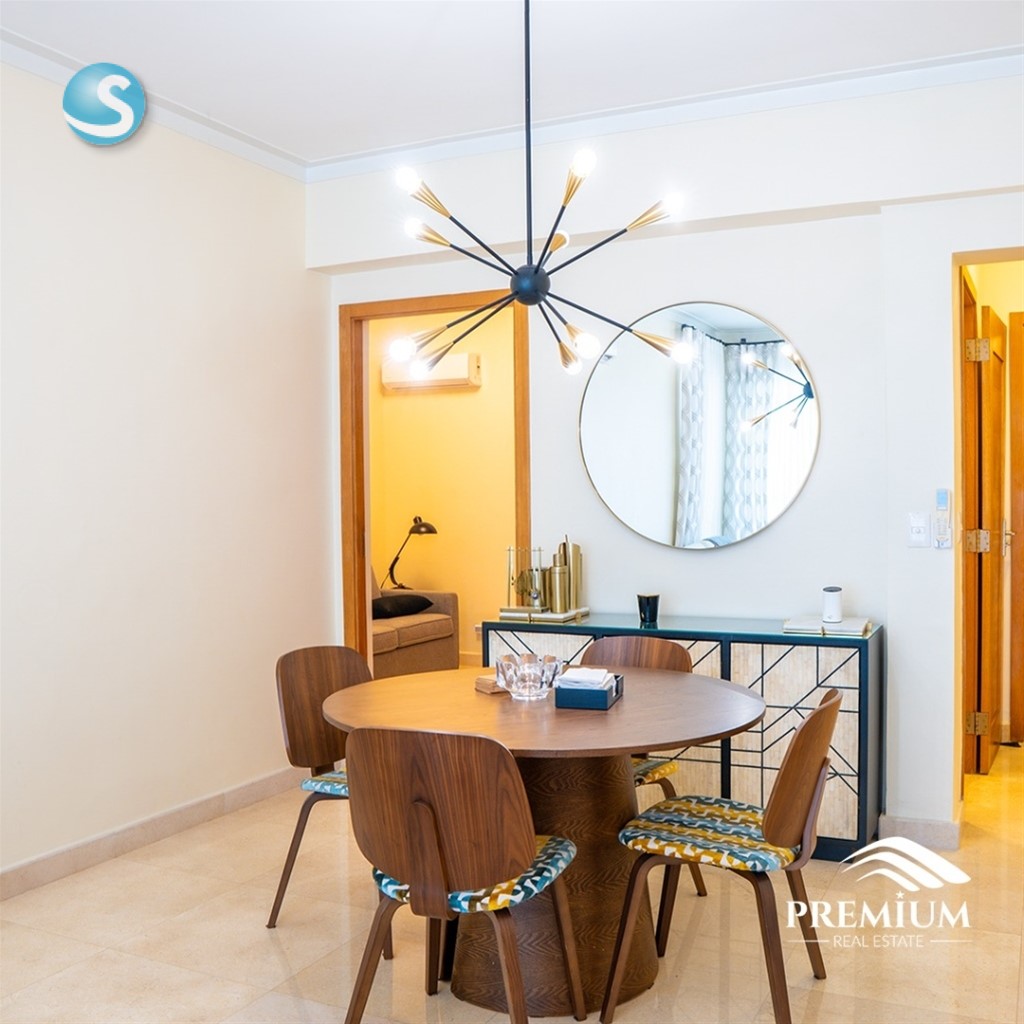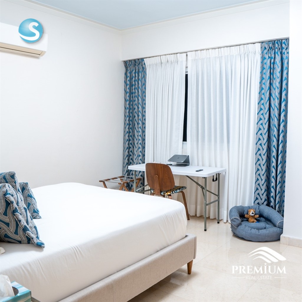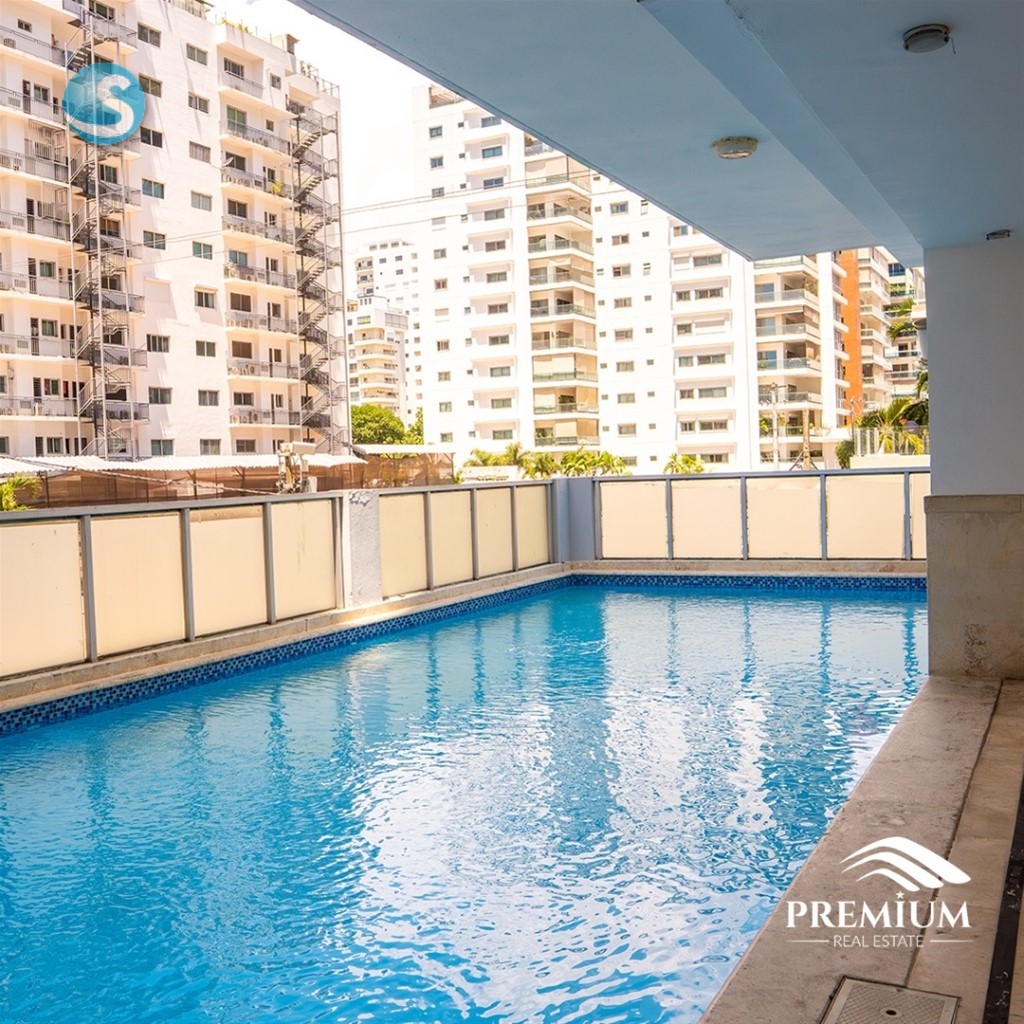 Amueblado - Apartamento en venta, ubicado en Piantini ?? Piso 14 137 mts 2 Habitaciones 2.5 Baños Sala Comedor Cocina Estar Balcón tipo terraza Cuarto de servicio con su baño Área de Lavado 2 Parqueos Torre con áreas sociales: Kitchenette Piscina Jacuzzi Gimnasio Sauna caballeros Sauna para damas Lobby 4 Ascensores Venta: US$385,000 (Amueblado)