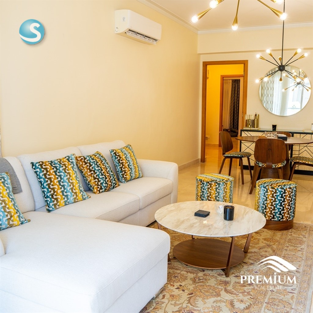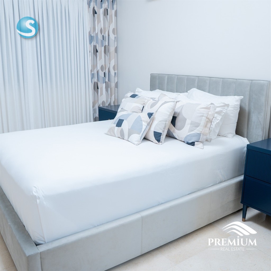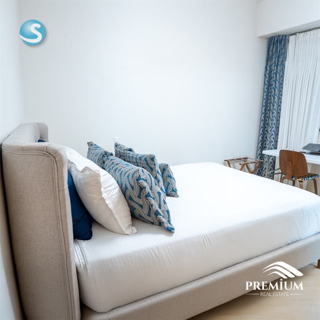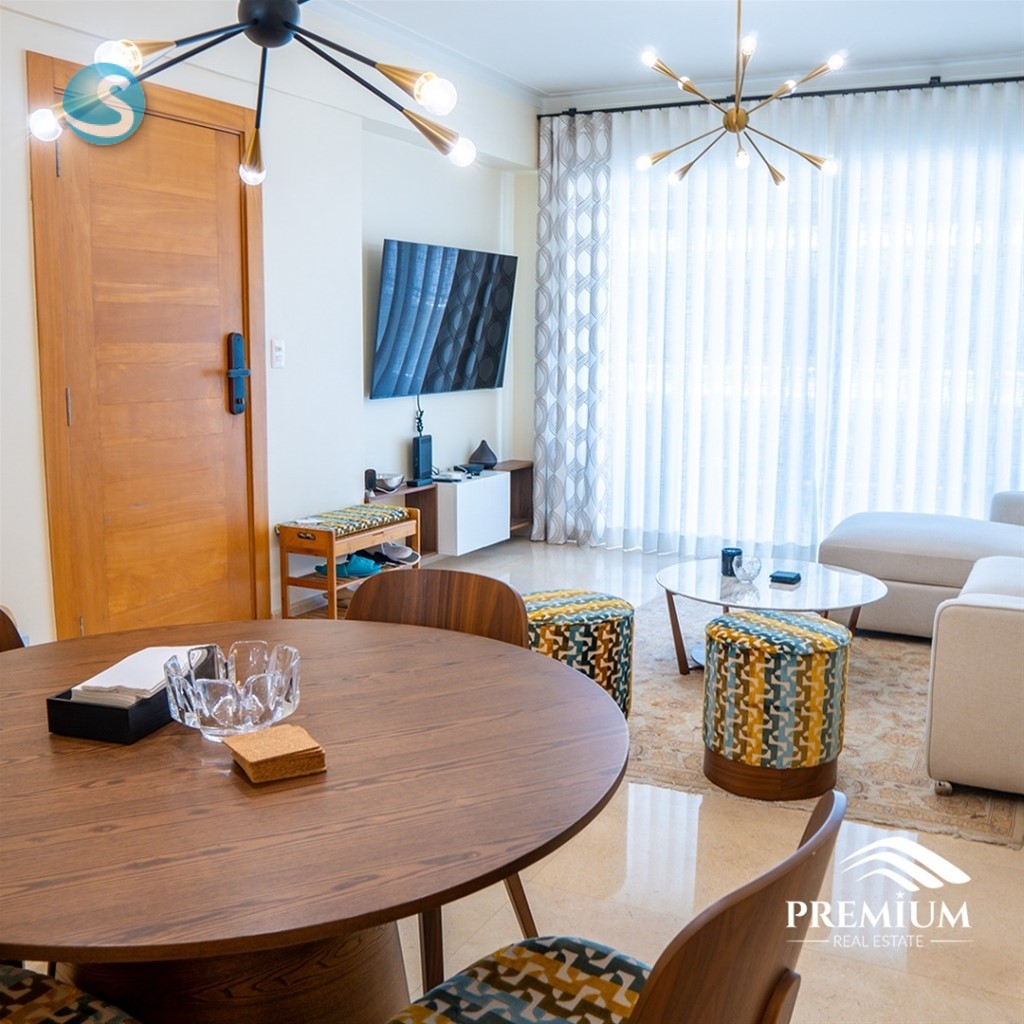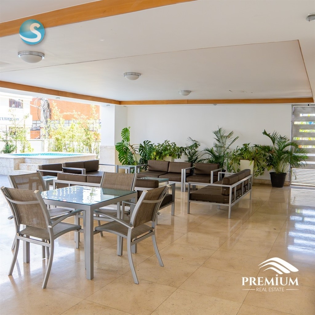 Amueblado - Apartamento en venta, ubicado en Piantini ?? Piso 14 137 mts 2 Habitaciones 2.5 Baños Sala Comedor Cocina Estar Balcón tipo terraza Cuarto de servicio con su baño Área de Lavado 2 Parqueos Torre con áreas sociales: Kitchenette Piscina Jacuzzi Gimnasio Sauna caballeros Sauna para damas Lobby 4 Ascensores Venta: US$385,000 (Amueblado)