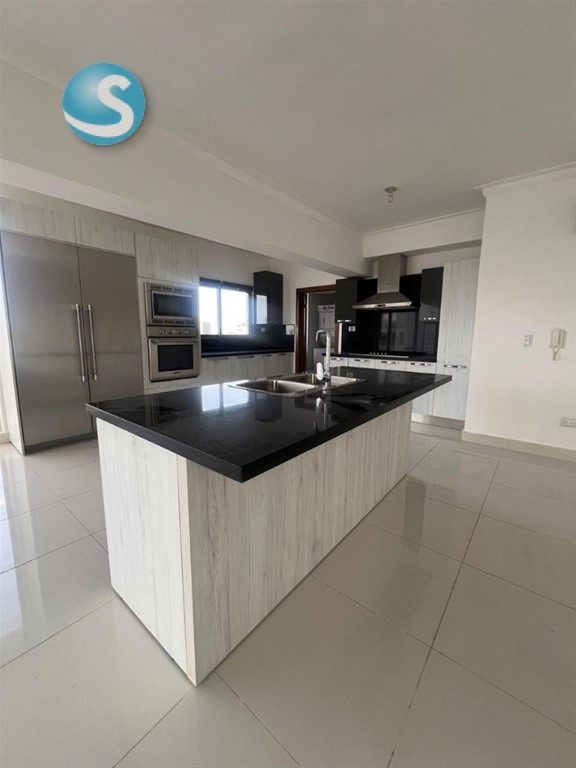 Piantini Alquilo apto piso alto Línea blanca 262.95 MTS US2,800 Dólares Open Concept Recibidor Balcón tipo terraza Sala/Comedor 1/2 baño Cocina italiana de 1ra Área lavado Cuarto de servicio Estar familiar con aire y plasma TV 3 Habitaciones con baños, principal con walk in closet forrado de cedro Pisos porcelanato importado Ventanas anti ruidos 3 Parqueos Planta full Salón choferes Gas común 2 Ascensores Amplio lobby Área social con: Piscina Terraza y área BBQ Gym Área infantil Área lounge Salón multiuso Tu Casa RD