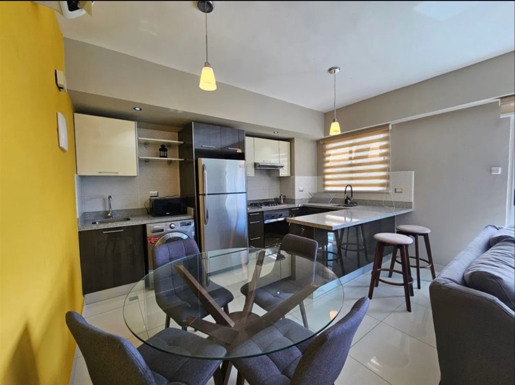Apartamento Amueblado en Alquiler en lo Mejor de Piantini – Santo Domingo Disfruta de la comodidad y el estilo en este moderno apartamento completamente amueblado, ubicado en el corazón de Piantini, a pasos de las principales avenidas, centros comerciales, restaurantes, bancos y oficinas corporativas de Santo Domingo. Este acogedor apartamento en piso alto, con orientación Este y vista despejada, ofrece una excelente iluminación natural y una distribución funcional ideal para ejecutivos o parejas que buscan vivir en una de las zonas más exclusivas de la ciudad. Características del apartamento: • 55 m² • 1 habitación con baño y closet de pared • 1.5 baños • Sala-comedor con shutter • Cocina integrada con desayunador • Balcón con vista panorámica • 1 parqueo de 13 m² Amenidades de la torre: • Lobby amueblado y climatizado • Gimnasio totalmente equipado • Área social techada con TV • Área social destechada con bar • Áreas verdes • 2 Ascensores • Planta eléctrica full • Seguridad 24/7