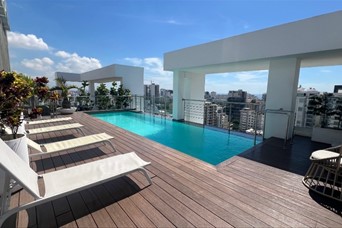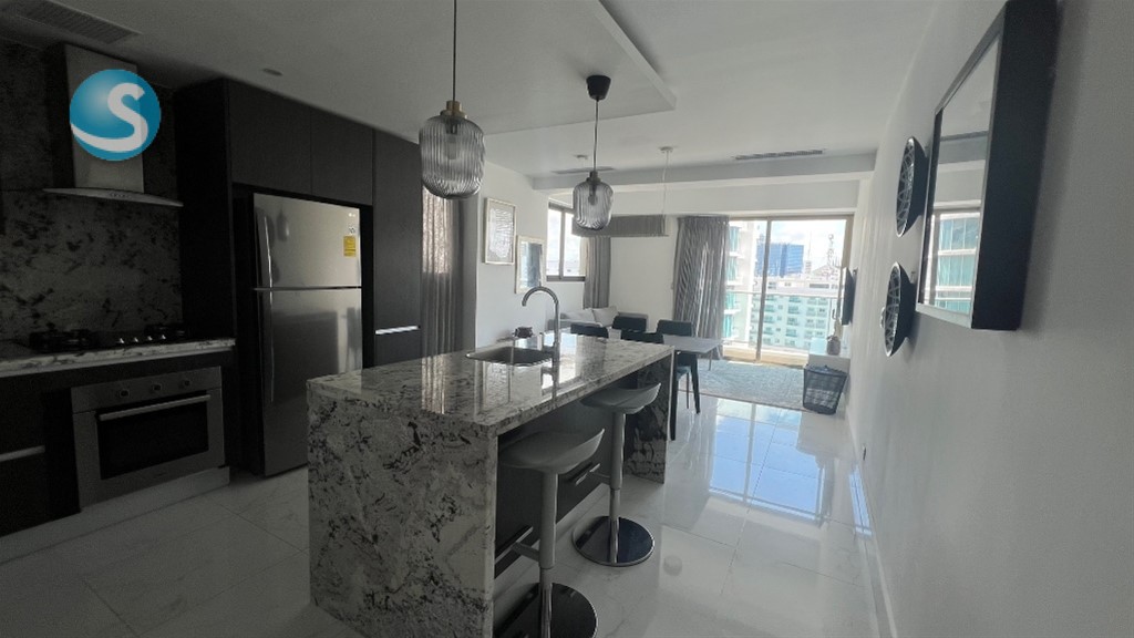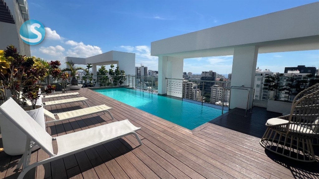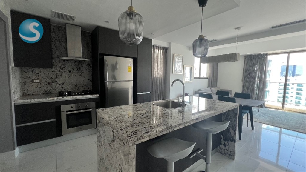 Apartamento Amueblado ubicado en en zona muy privilegiada Vive en la comodidad en este moderno apartamento Perfecto para quienes buscan confort, estilo y conveniencia en un solo lugar Cuenta con: * 1 habitación * 1.5 baños * 1 parqueo techado * Sala / Comedor * Cocina con isleta * Área de lavado * Pequeño balcón * 80 mts de const. * 8vo piso con vista despejada El edificio cuenta con: * Lobby climatizado * 3 ascensores * Planta eléctrica * Control de acceso * Portón eléctrico * Áreas sociales completas en el último piso