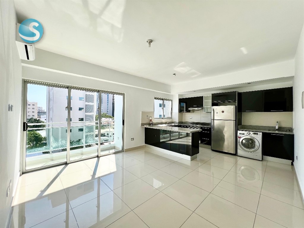 En el corazón de Piantini! Amplio y moderno apartamento en torre con áreas sociales y un mantenimiento impecable! Características: - 1 habitación - ?55m2 - 1.5 baños - Amplia sala - 1 parqueo techado - Ascensor - Linea Blanca incluida (Estufa, Nevera, Lavadora/Secadora, Extractor, Cortina y 2 Aires Split) - Piso 6 con vista a la ciudad A pasos de los mejores restaurantes de la ciudad! (Loretta, Peperoni, Don Pepe y otros). Precio de Renta: US$950 mantenimiento incluido