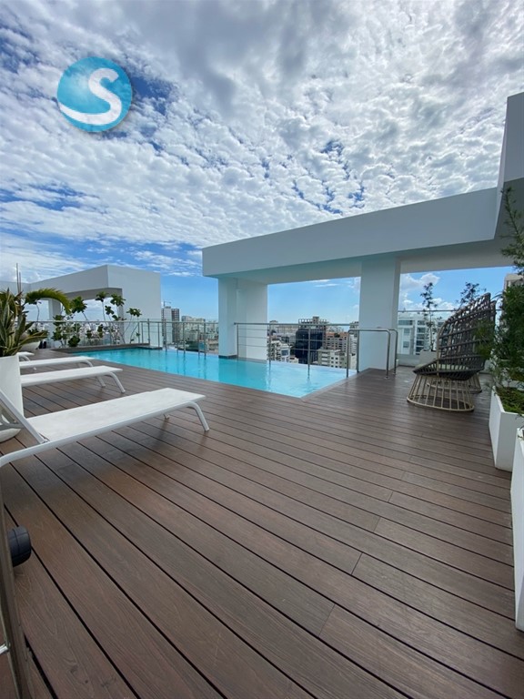 Alquilo apartamento de lujo amueblado completamente: Detalles del apartamento: -90 m2 -Piso alto -Vistas a la cuidad -1 habitación + 1.5 baños -Cocina integrada con desayunador -Sala -Comedor -Área de lavadora y secadora -Walk-in closet -Balcón en la habitación -1 parqueo Detalle De la Torre: -Lobby -3 ascensores -Doorman -Conserjería -Amenidades: Rooftop con terraza techada y detallada y BBQ, piscina infinity con vista a la cuidad, gym super equipado, salón multiuso. El precio incluye el cable y el internet.