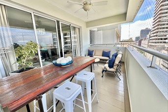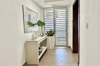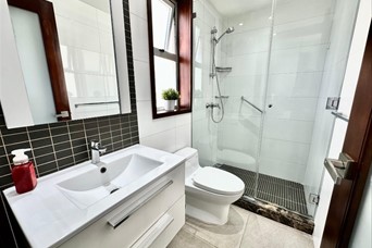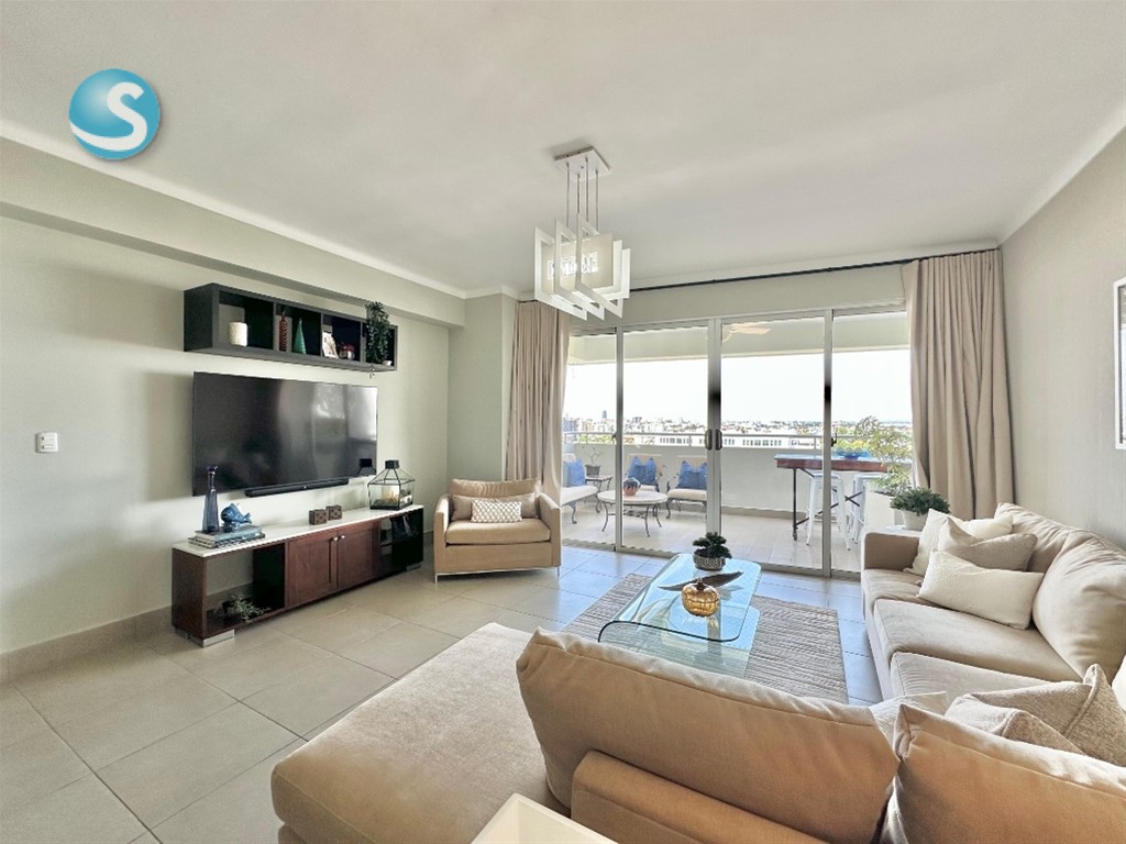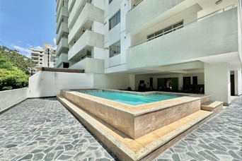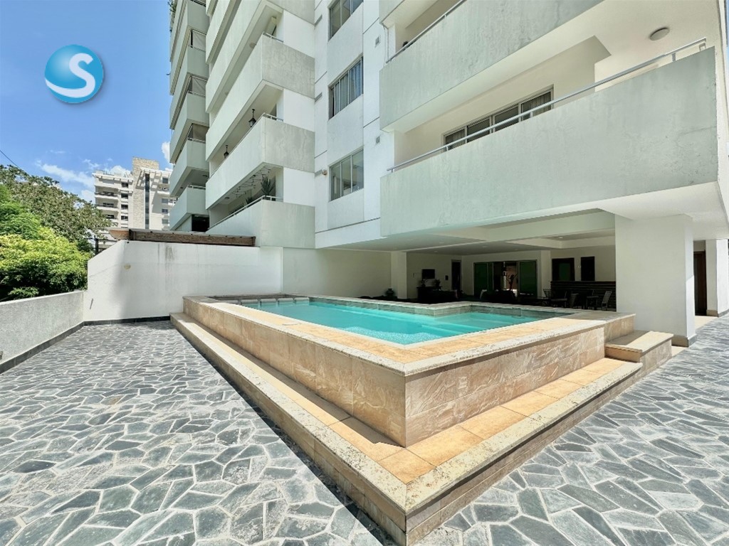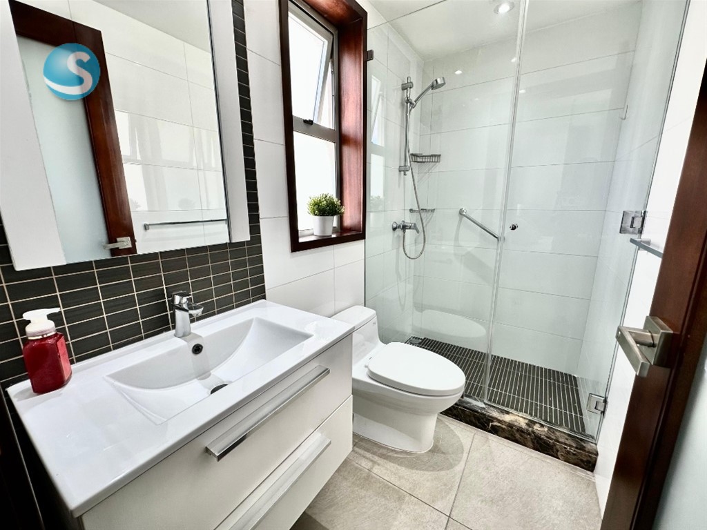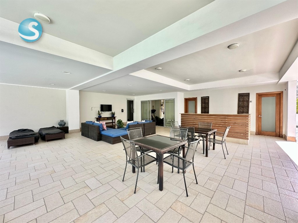 Apto amueblado a solo pasos de Blue Mall. 3 hab 3.5 baños Sala Comedor Cocina Balcón tipo terraza Área de lavado Cuarto de servicio 2 parqueos Recibidor Amenidades de la torre: Lobby 2 ascensores Gimnasio Piscina Terraza techada Estación de choferes 2 aptos por piso Mantenimiento y gas incluido