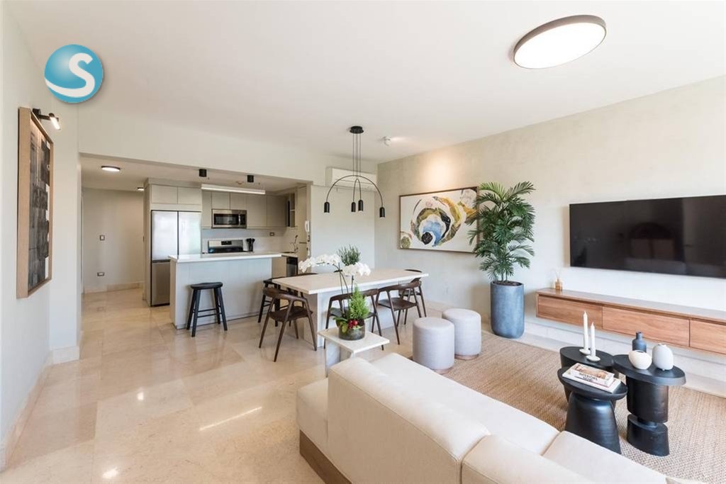 Código: 2748 Vive con elegancia y confort en este moderno apartamento amueblado ubicado en una torre de primera categoría, con una completa área social y todas las comodidades que necesitas. Características del apartamento: • 106 m² • Totalmente amueblado • 2 habitaciones • 2 baños • Baño de visitas • Sala y comedor integrados • Balcón con vista • Cocina modular moderna • Área de lavado • Habitación de servicio con baño • 2 parqueos techados Amenidades de la torre: • Lobby climatizado • Gimnasio equipado • Piscina • Área de juegos infantiles • Salón de actividades • Planta eléctrica full • Seguridad 24 horas • 2 ascensores Precio de alquiler: US$ 2,800 mensuales
