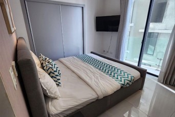 Distribución: Habitación con baño Sala Comedor Balcón Baño de Visitas 1 parqueo Piscina GYM Picuzzi compartido en el roof