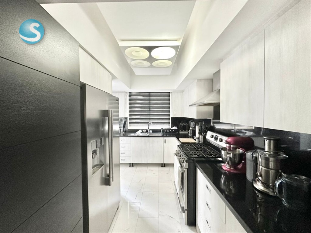 180 M2 netos. 200 M2 totales. Dos (2) parqueos techados. Dos (2) habitaciones con walk-in closets. 2.5 baños. Balcón grande con vistas despejadas. Sala. Comedor. Cocina cerrada. Family room. Oficina. Área de lavado. Habitación de servicio. Dos (2) ascensores. Área común; Piscina. Gym. Terraza amueblada Salón cerrado. *Completamente amueblado y equipado. *PRECIO DE ALQUILER: US$2,500.00