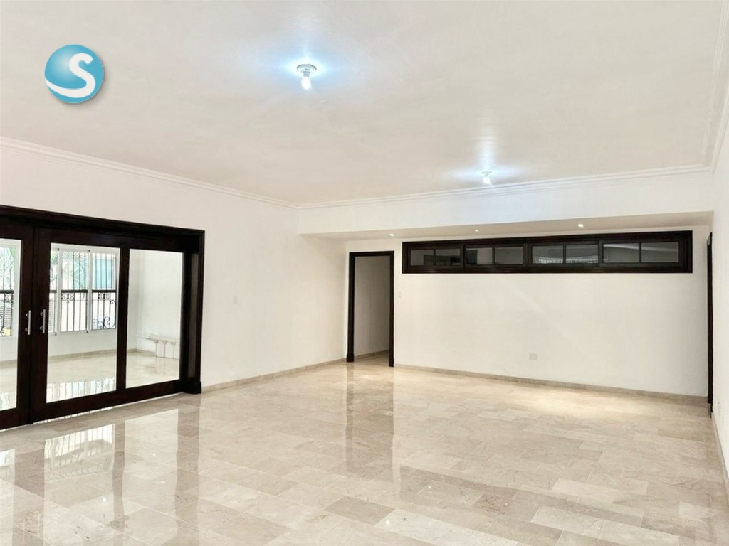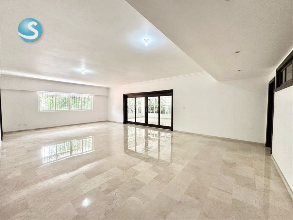 Amplio apartamento en alquiler ubicado en Piantini 365.00 m2 netos 385.00 m2 totales Dos (2) parqueos techados Torre familiar Dos (2) apartamentos por piso Pisos de mármol Cuatro (4) Habitaciones Tres (3) Habitaciones con walking closet , habitación principal con closets en cedro Una (1) Habitación con closet 3.5 Banos Recibidor Estudio Sala Comedor Cocina Área de lavado Cuarto de servicio Acceso independiente al área de servicio Generales: Dos (2) Ascensor Gas común Planta eléctrica Seguridad 24h Portòn eléctrico Lobby climatizado Área social Precio de alquiler: US$4,500.00 Incluye linea blanca
