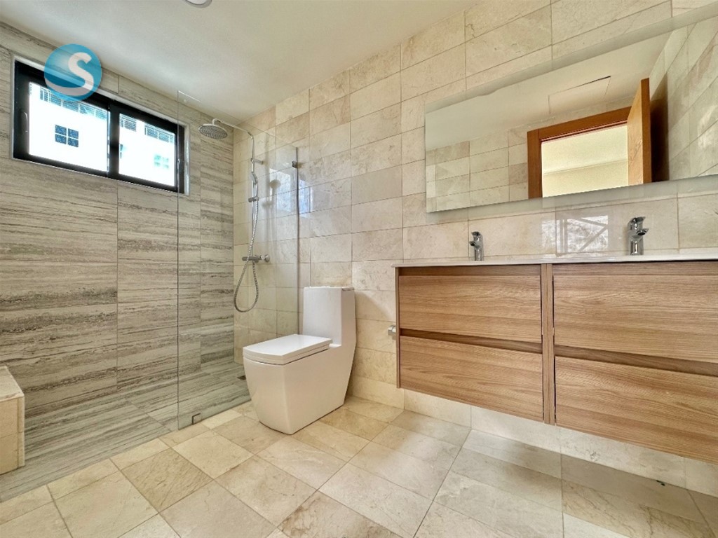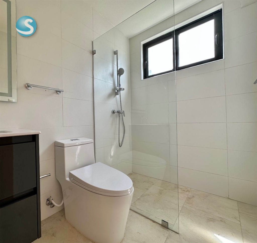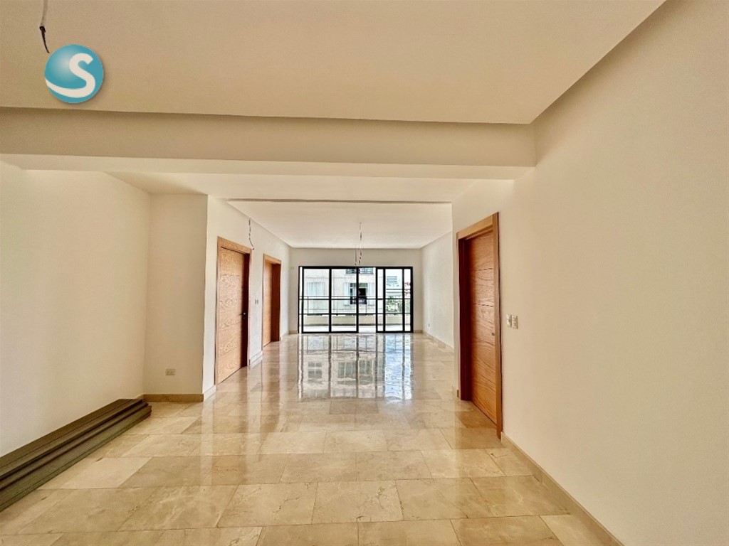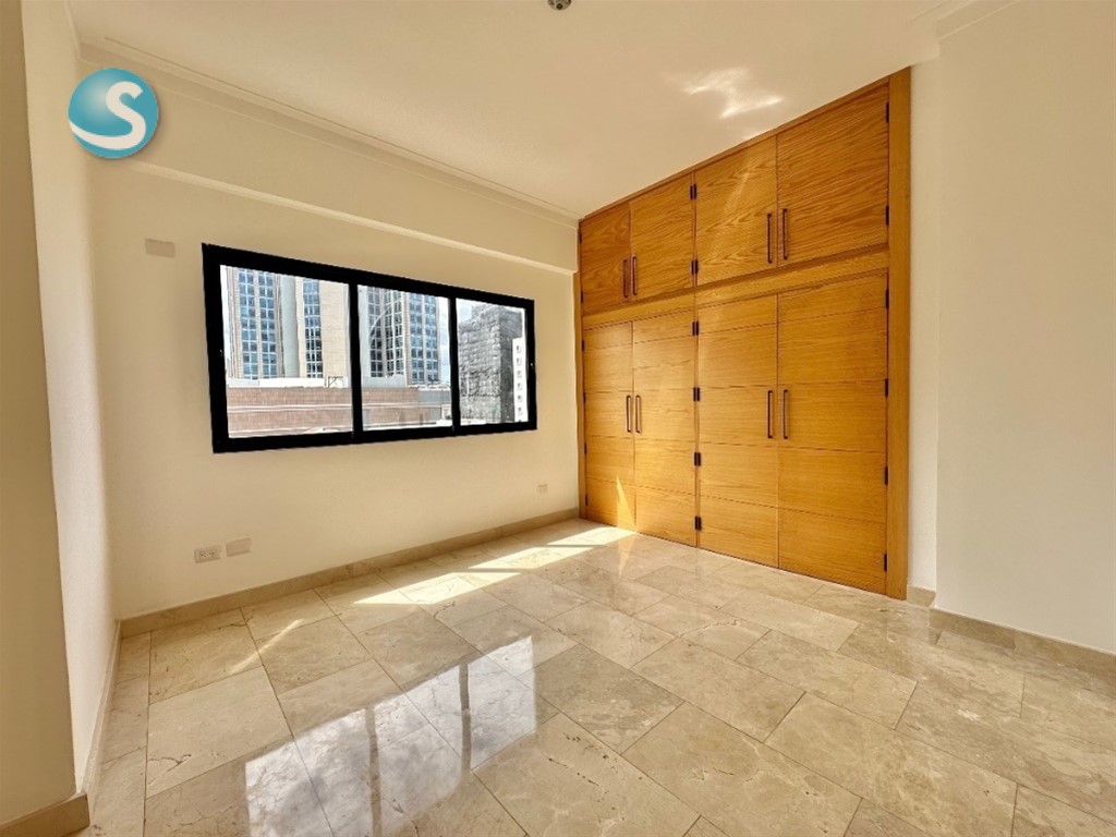 202 m2 netos. 242 m2 totales. Tres (3) parqueos techados paralelos. Tres (3) habitaciones. Habitación principal tiene walk-in closet. 3.5 baños. Sala. Comedor. Estudio cerrado. Cocina cerrada. Cocina caliente y fría. Balcón. Aire acondicionado. Cisterna. Área de lavado. Cuarto de Servicio. Dos (2) elevadores. Un (1) locker. Inversor. Control de accesos con tarjeta. Sistema vigilancia cámaras. Sistema contra incendio. Área común; Piscina. Gimnasio. Salón de eventos. Terraza amueblada techada. Área infantil. Estar de choferes. *Residencial cerrado Incluye mantenimiento, línea blanca y gas común. *No amueblado. *Todos los closets en sabina y modulares. *Piso alto listo para estrenar. *Alquiler mínimo 2 años. *Precio de alquiler: 3,500.00 USD.