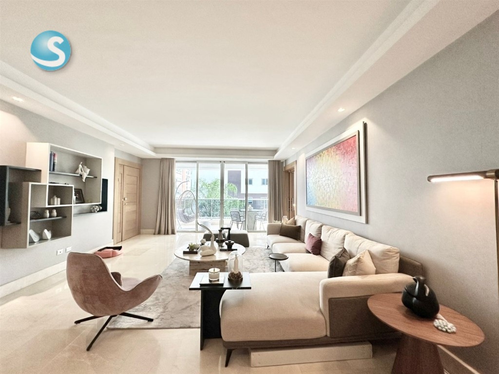 Acogedor apartamento en Piantini, con diseño elegante y excelente ubicación, ideal para disfrutar comodidad y exclusividad en el corazón de la ciudad. 225mts Neto. 262.50 mts Total. Tres (3) Habitaciones. 3.5 Baños. Sala. Comedor. Estudio. Cocina Área de lavado. Habitación de servicio. Balcón. Dos (2) ascensores. Tres (3) parqueos techados. Locker. Área social; Piscina Terraza amueblada Gimnasio Área de niños ---------------------------------------------- Venta. US$650,000.00 Mantenimiento: RD$28,000.00 Precio incluye línea blanca completa y aires acondicionados.