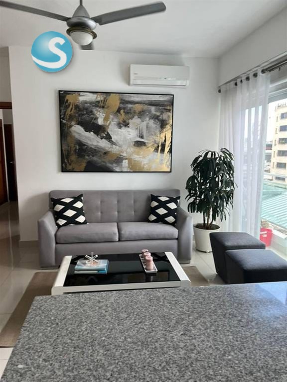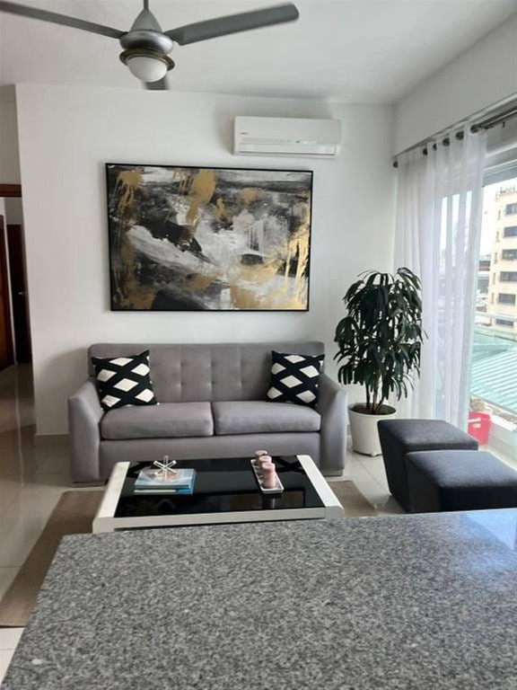 Moderna torre ubicada en el centro de Piantini, con apartamento completamente amueblado en alquiler. Sala, comedor, moderna cocina separada con desayunador(Equipada con toda una línea de acero inoxidable) , 1 amplia habitación con su baño. Baño para visitas 1 parqueo Torre con lobby y terraza para actividades Gimnasio Planta eléctrica Ascensor Precio alquiler amueblado US$ 1,050 mantenimiento incluido.... #2750