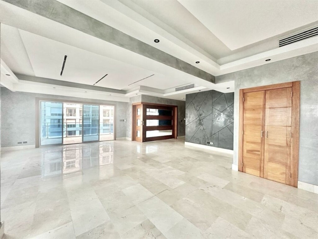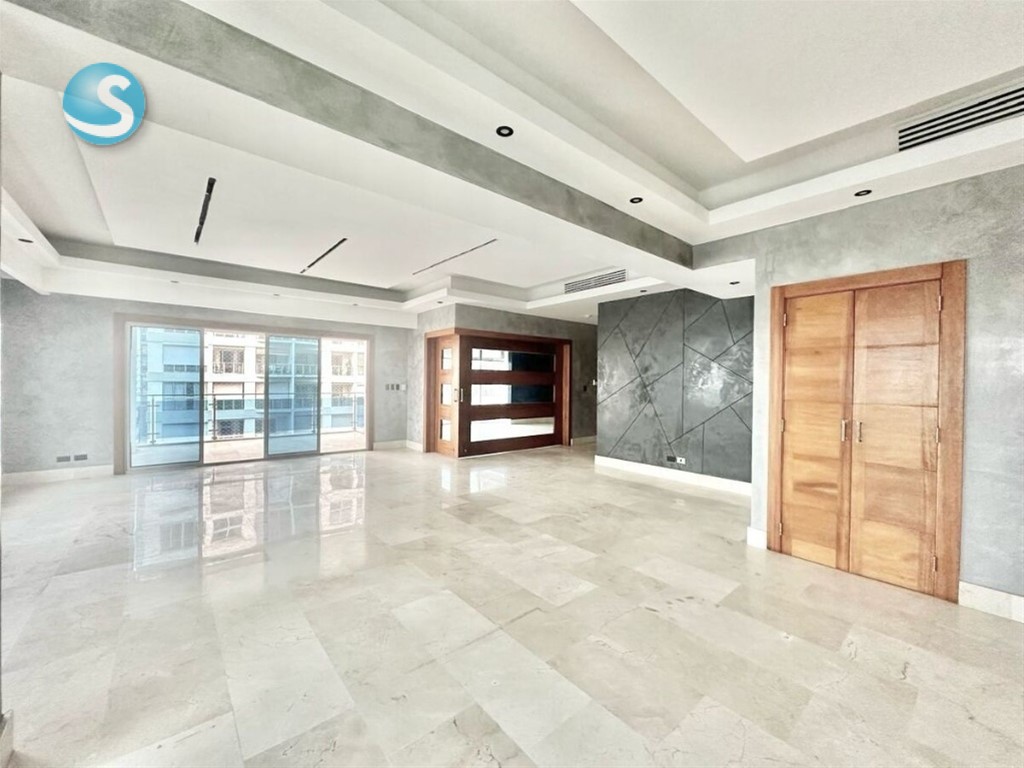 Amplio y moderno apartamento con excelente ubicación en el corazón de Piantini Un (1) apartamento por nivel 390 Mts totales 344 Mts netos 4 parqueos techados Un (1) locker Tres (3) habitaciones con walk-in clóset y baño Medio baño de visitas Sala Comedor Estudio cerrado Family Room Balcón Amplio Cocina fría Área de lavado Habitación de servicio con baño La torre dispone de lobby amueblado y climatizado, dos (2) ascensores, estar de choferes y áreas sociales con: piscina, terraza destechada, terraza techada, salón de eventos y gimnasio. * Piso alto con vista despejada * Torre familiar * Ubicación céntrica ----------------------------------------------------------------------------------- Precio de venta. US$750,000 Mantenmiento. RD$44,400.00