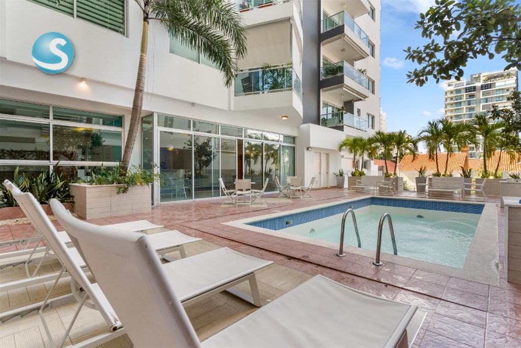 Apartamento de Lujo en Piantini con Amplia Terraza Ubicación: Exclusiva zona de Piantini (cercano a Pepperoni). Características Principales: • Espacio: 128 \Mts de construcción en un segundo nivel. • Terraza: Impresionante terraza privada de 50 \Mts. • Estado: Totalmente amueblado y listo para mudarse. • Distribución: • 2 Habitaciones y 1 Estudio. • Sala-Comedor de concepto abierto. • Cocina moderna y equipada. • 2 Baños completos y 1 medio baño. • Cuarto de servicio y área de lavado. • Estacionamiento: 2 parqueos. Amenidades del Edificio: • Piscina y Gimnasio equipado. Oportunidad única para una vida de estilo y comodidad. Contacte a los propietarios para más información. Asesora: Clara Sanchez Tel. 829-283-3235