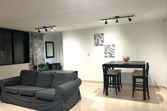 Apartamento amueblado completo en cuarta planta del Residencial Piantini II. NO POSEE ASCENSOR. EL PRECIO INCLUYE EL MANTENIMIENTO. Ubicado en Avenida Abraham Lincoln No. 999, de la ciudad de Santo Domingo, Distrito Nacional. Descripción: 112 metros cuadrados de construcción distribuidos en: Sala, comedor, cocina con desayunador, área de lavado, cuarto de servicio con su baño, dos dormitorios, el dormitorio principal con su baño y doble closets, baño secundario para el segundo dormitorio. UN PARQUEO SIN TECHAR PARA VEHICULO MEDIANO O PEQUENO. Los pisos son en cerámica, toda la madera y gabinetes son en madera caoba en su tono natural, las ventanas corredizas de cristal con sus cerraduras en color negro, hierros en todas las ventanas y puertas, timbre, calentador de gas, closet de ropa blanca, inversor. Esta amueblado en todas sus áreas con el inventario que se anexa al contrato de alquiler. Posee tres aires acondicionados con el sistema inverter. Uno en cada dormitorio, y uno en la sala-comedor. Características del edificio: El edificio posee portón eléctrico, cisterna con su bomba, puerta peatonal, baño para los empleados. EL GAS ES INDIVIDUAL PARA CADA APARTAMENTO. Se entrega con un tanque de gas de 100 libras lleno.