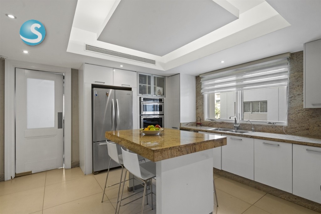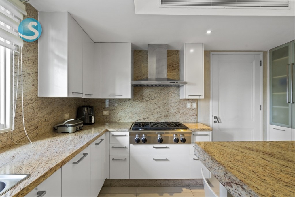 Vive en un espacio atemporal y espacioso en exclusiva zona de Piantini; 429mts netos. 489mts total. Un (1) apartamento por nivel. Cuatro (4) parqueos techados. Locker. Tres (3) Habitaciones 3.5 Baño Recibidor Sala Comedor Estudio Terraza Estar familiar. Dos (2) cocinas Área de lavado + habitación de servicio Dos (2) ascensores Un (1) ascensor de servicio Concierge 24H Lobby climatizado Seguridad 24H. Intercom con vídeo cámara. Terminación; Pisos en mármol Puertas y madera importada Aires acondicionados fan coil en todas las áreas Shutters en ventanas Walk-in closet en cedro. Ventanas doble hoja con aislamiento acústico Área común; Lobby Climatizado Concierge 24H Piscina BBQ Gazebo Jacuzzi Gimnasio Salón multiusos. Estar de chóferes --------------------------------------------------- VENTA US$1,385,000.00 ---------------------------------------------------