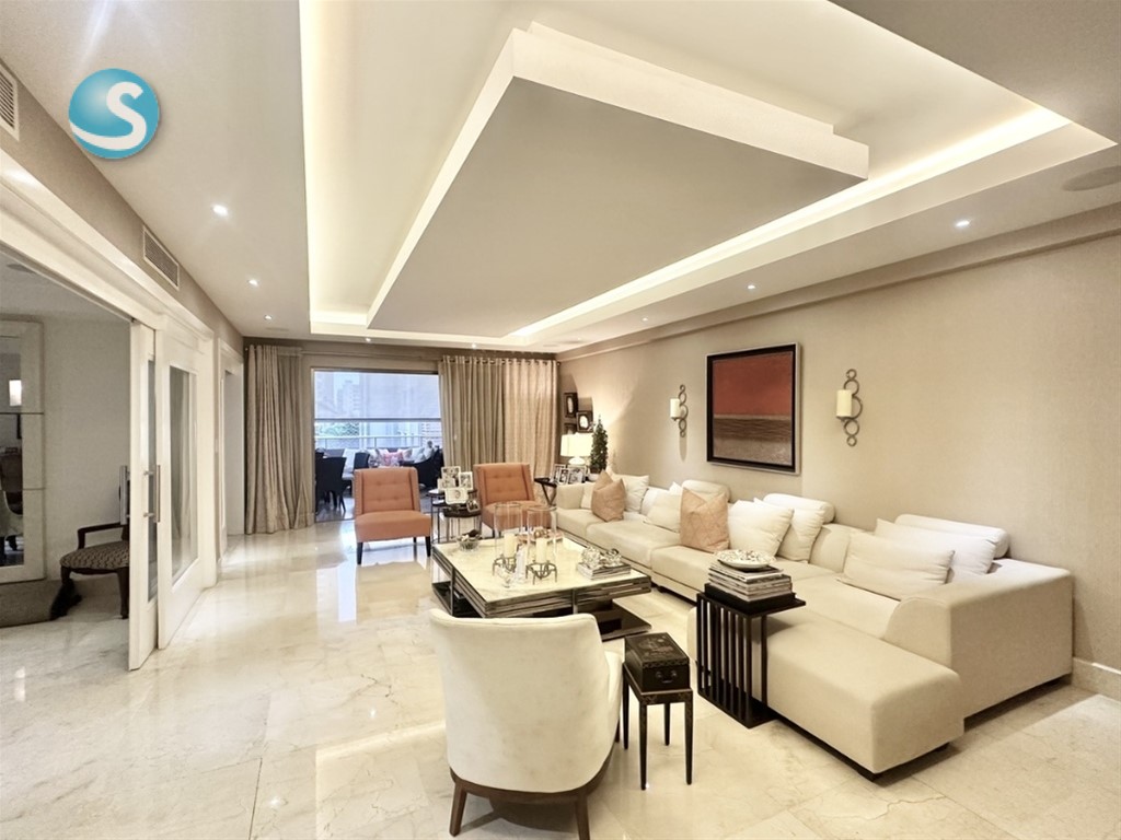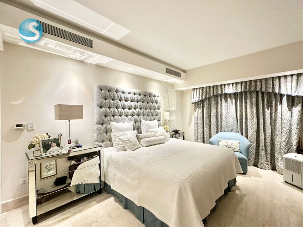 348mts netos. 400mts total. Tres(3) habitaciones, Walk-in Closet 3.5 baños Sala Comedor Estudio Balcón tipo terraza Estar familiar Cocina fría Cocina caliente Área de lavado Dos (2) elevadores Tres (3) parqueos techados Locker Área social: Piscina Área de niños Gimnasio Salón de eventos amueblado * Aires acondicionados y shutters en todas las áreas ------------------------------------------------------------------------- Venta. US$950,000.00