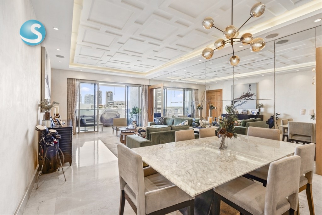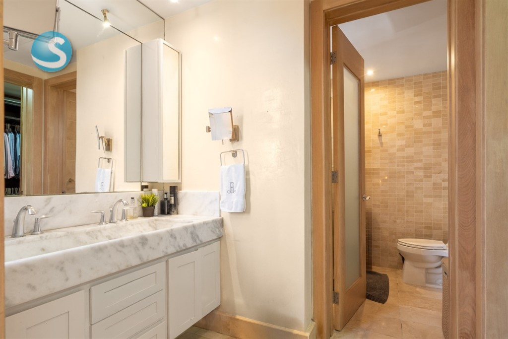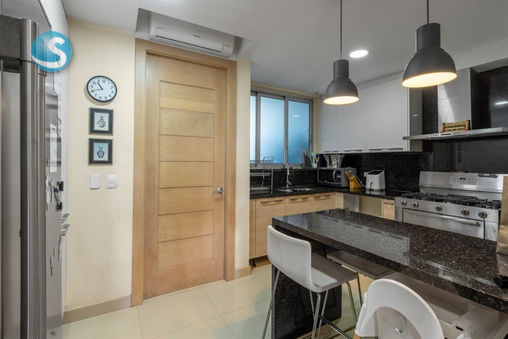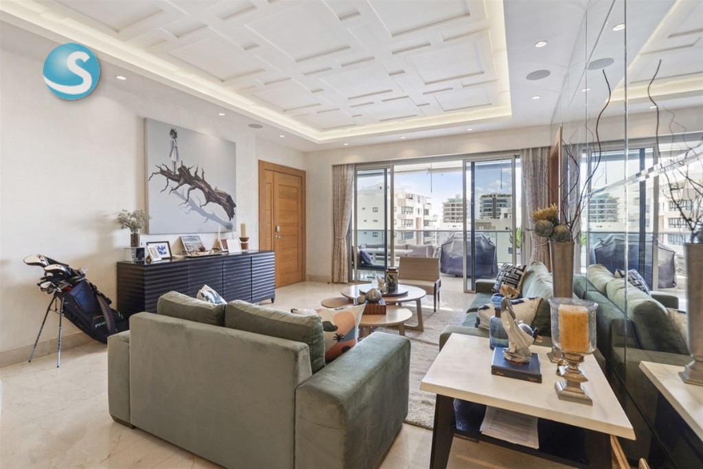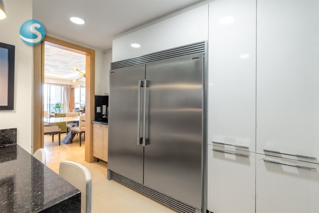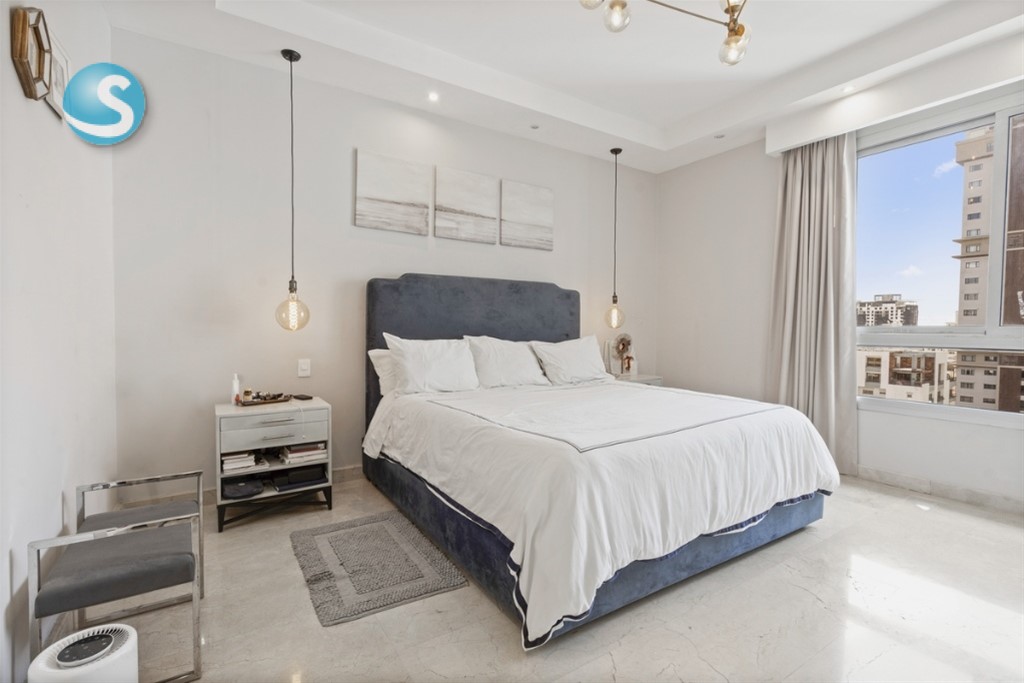 Elegante y acogedor apartamento a la venta en exclusiva zona de Piantini. 225mts Neto. 287.50mts Total. Tres (3) Habitaciones. 3.5 Baños. Sala. Comedor. Estudio. Cocina Área de lavado. Habitación de servicio. Balcón. Dos (2) ascensores. Cinco (5) parqueos techados. Locker. Área social; Piscina Terraza amueblada Gimnasio Área de niños ---------------------------------------------- Venta. US$750,000.00 Mantenimiento: RD$28,000.00 Precio incluye línea blanca completa y aires acondicionados.