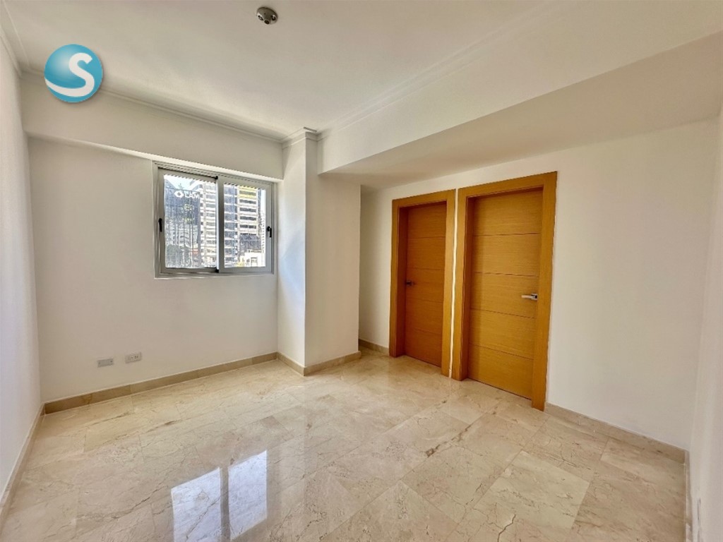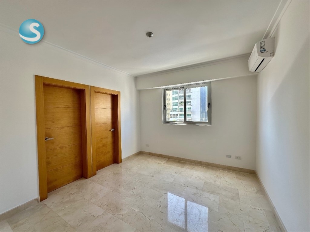 170 m2 netos. 197 m2 totales. Dos (2) parqueos techados paralelos. Tres (3) habitaciones. 3.5 baños. Sala. Comedor. Cocina cerrada. Balcón. Área de lavado. Habitación de servicio. Dos (2) elevadores. Locker. Área común; Terraza amueblada con jacuzzi. Sun deck. Salón de eventos amueblado. Gimnasio. *Residencial cerrado. *Terminación de primera, pisos de mármol. *Precio incluye 4 aires acondicionados. *Mantenimiento: RD$14,000.