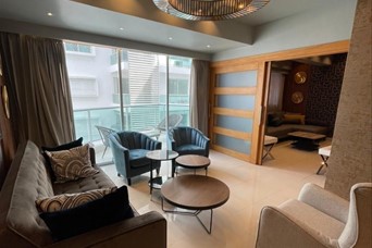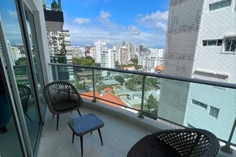 Piantini 167 mts de construcción 2 habitaciones con baño ambas Estudio Baño de visitas Cuarto de servicio con baño Sala Comedor Cocina con desayunador Balcón amplio 2 parques techados Amenidades: Piscina con bar y área social Salón de conferencia equipado Área de juego para niños Gimnasio Alquiler Amueblado: US$2,300