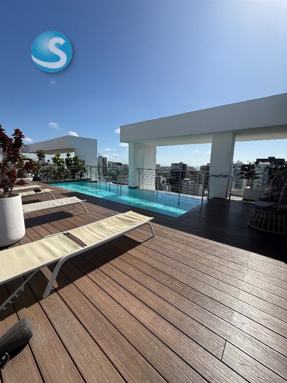 PIANTINI Apartamento de inversión 1 habitación en edificio de lujo en Piantini, próximo a la Avenida Abraham Lincoln y Avenida Churchill. Amenidades: -Seguridad 24 horas -Lobby amueblado y climatizado -Salón para reuniones -3 ascensores, 2 para residentes y 1 de carga -Terraza techada y destechada -Salón de eventos -BBQ -Piscina -Gimnasio -Cine -Planta Eléctrica Full -Gas Común con medidor Característica del inmueble: -Piso 3 -85 metros netos -1 habitación, habitación principal con balcón, walking closet y baño -Medio baño de visita -Sala/Comedor -Cocina abierta con desayunador -Área de lavado -1 parqueo Precio: USD$265,000 Mantenimiento: RD$10,000 LISTO PARA ENTREGA