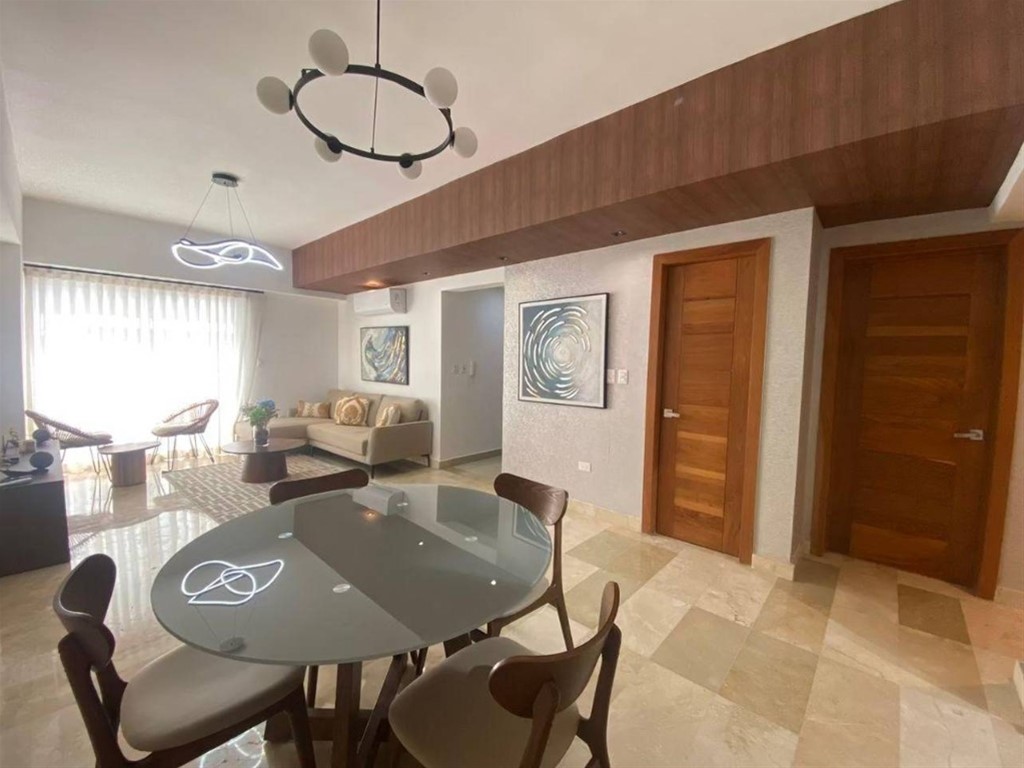 Moderno apartamento en alquiler amueblado en Piantini Piso 8 2 habitaciones 2.5 baños Sala Comedor Closet de ropa blanca Balcón Área de lavado Habitación de servicio 2 parqueos techados Escalera de emergencia Terminaciones Pisos en mármol Madera preciosa Jambas Tope de cocina en granito natural Cornisas en sheet rock Intercom Amenidades y características de la torre Portón eléctrico Ascensores Luz 24 hrs Camaras de seguridad Gimnasio Piscina Lobby climatizado Terraza común Gas común Pozo Cisterna Precio de alquiler US$1,800 CAR. C.
