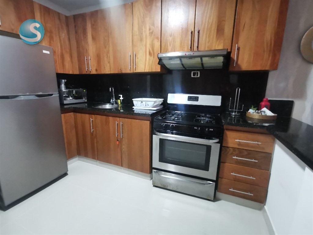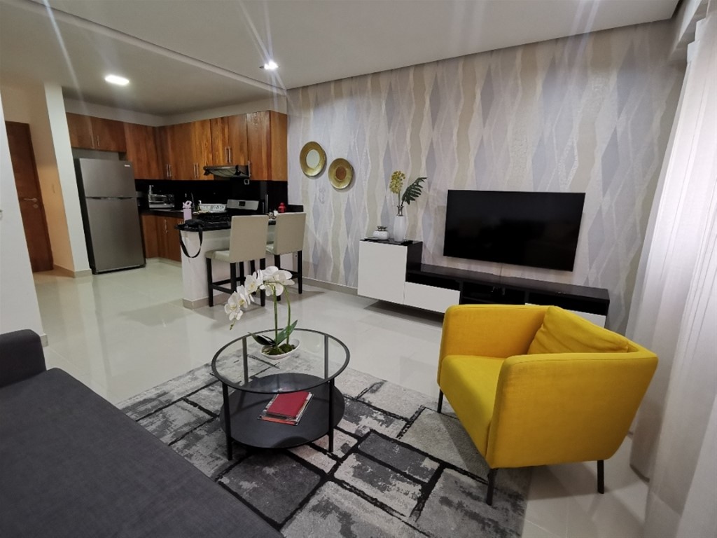 Apartamento en alquiler amueblado, zona Premium de Piantini!! *Metraje* 63 m² **Características del apartamento ** * 1 habitacion (con baño y walking clóset) * 1/2 baño de visitas * Sala- Comedor * Cocina modular con desayunador * Desayunador * Pisos de porcelanato * Topes de granito * Área de lavado * 1 parqueo techado Sobre la torre: * Lobby amueblado y climatizado * Planta electrica full * Dos ascensores modernos * Intercom con control de acceso * Sistema de gas común * Sistema de seguridad con acceso controlado y cámaras 24/7 * Área social " Gimnasio climatizado * Área de juegos para niños * Salón para eventos * Sistema contra incendios * Escalera de emergencia * Pozo con bomba a presión sumergible Precio: US$975 (Mantenimiento y gas incluido) Sugeiley Ozuna 809-885-0795 Kw Capital