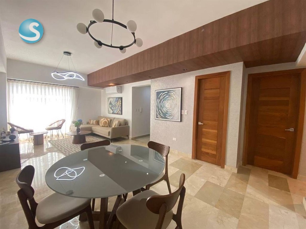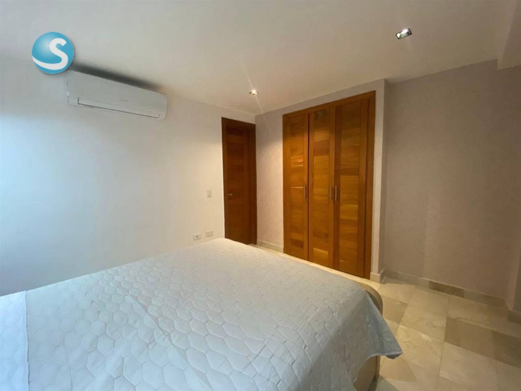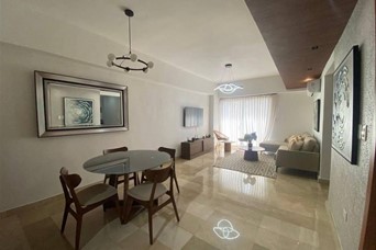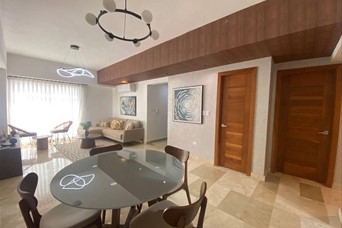 Moderno apartamento en alquiler amueblado en Piantini Piso 8 2 habitaciones 2.5 baños Sala Comedor Closet de ropa blanca Balcón Área de lavado Habitación de servicio 2 parqueos techados Escalera de emergencia Terminaciones Pisos en mármol Madera preciosa Jambas Tope de cocina en granito natural Cornisas en sheet rock Intercom Amenidades y características de la torre Portón eléctrico Ascensores Luz 24 hrs Cámaras de seguridad Gimnasio Piscina Lobby climatizado Terraza común Gas común Pozo Cisterna Precio de alquiler US$1,800 CAR. C.
