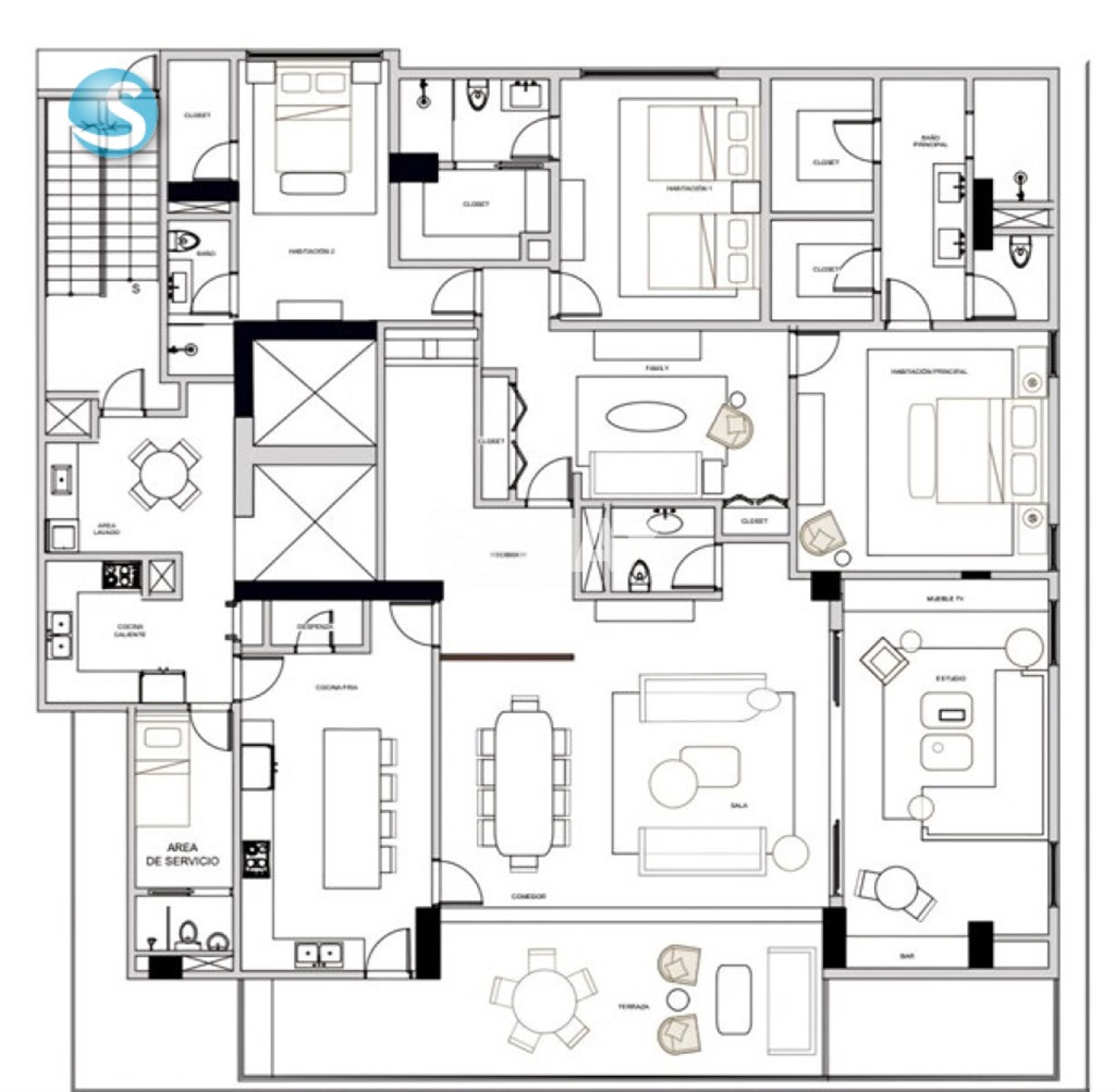 Piantini, un apartamento por nivel, solo 13 vecinos ! Descubre este impresionante apartamento con concepto de espacios abiertos en el exclusivo sector de Piantini, 395 metros cuadrados de construcción, esta propiedad ofrece un estilo de vida lujoso y cómodo. Cuenta con 3 amplias habitaciones, la principal con dos walking closets , cada una con su baño privado, y un total de 4 parqueos, ademas espacioso balcon tipo terraza, family , estudio , cocina fria y caliente, sistema de aire acondicionado central, y puro lujo en las terminaciones. Disfruta de sus elegantes áreas sociales que incluyen Lobby a doble altura, salones multiuso, piscina, jacuzzi, bar, terrazas, kids club, area de choferes y mucho mas ... Ideal para quienes buscan confort y exclusividad en una ubicación privilegiada.