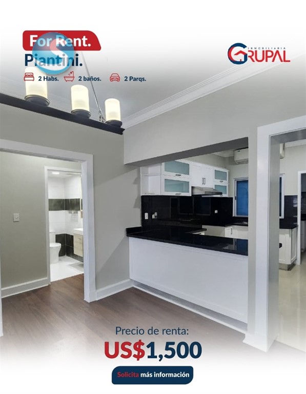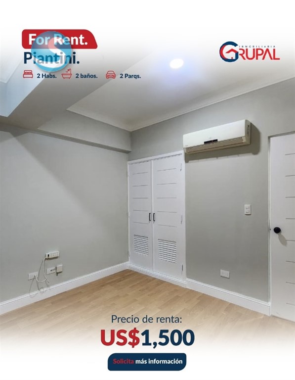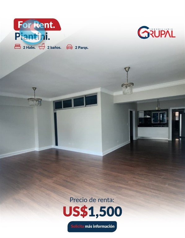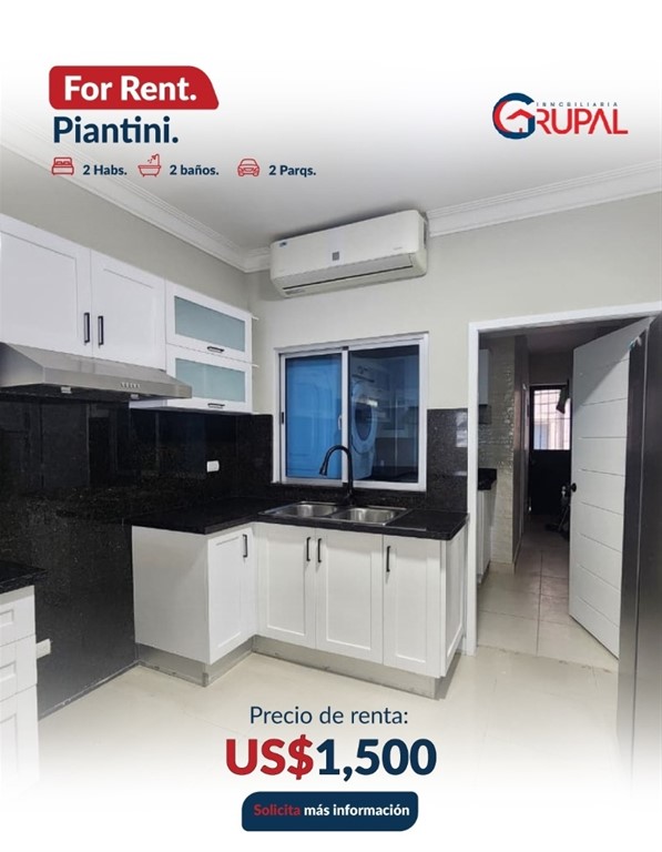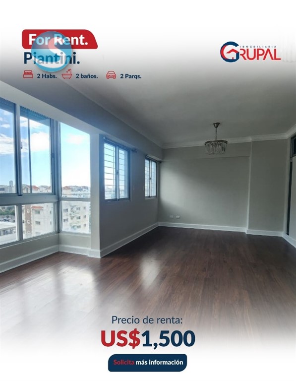 PISO ALTO en alquiler ubicado en Piantini?? ?????????????????????????????? ?????? ?????????????????????? ?2 habitaciones Principal con walk in closet ?2 Baños ?Sala ?Comedor ?Cocina fría con desayunador ?Cocina caliente ?Pisos en madera ?Zona de lavado ?Cuarto de servicio ?2 parqueos ?????????????????????????????? ???? ???? ?????????? ??Servicios ??Lobby ??Área Social ??Cocina ??Baño de visitantes ??Salón multiuso ??Gimnasio ???????????? ???? ???????????????? US$1500????