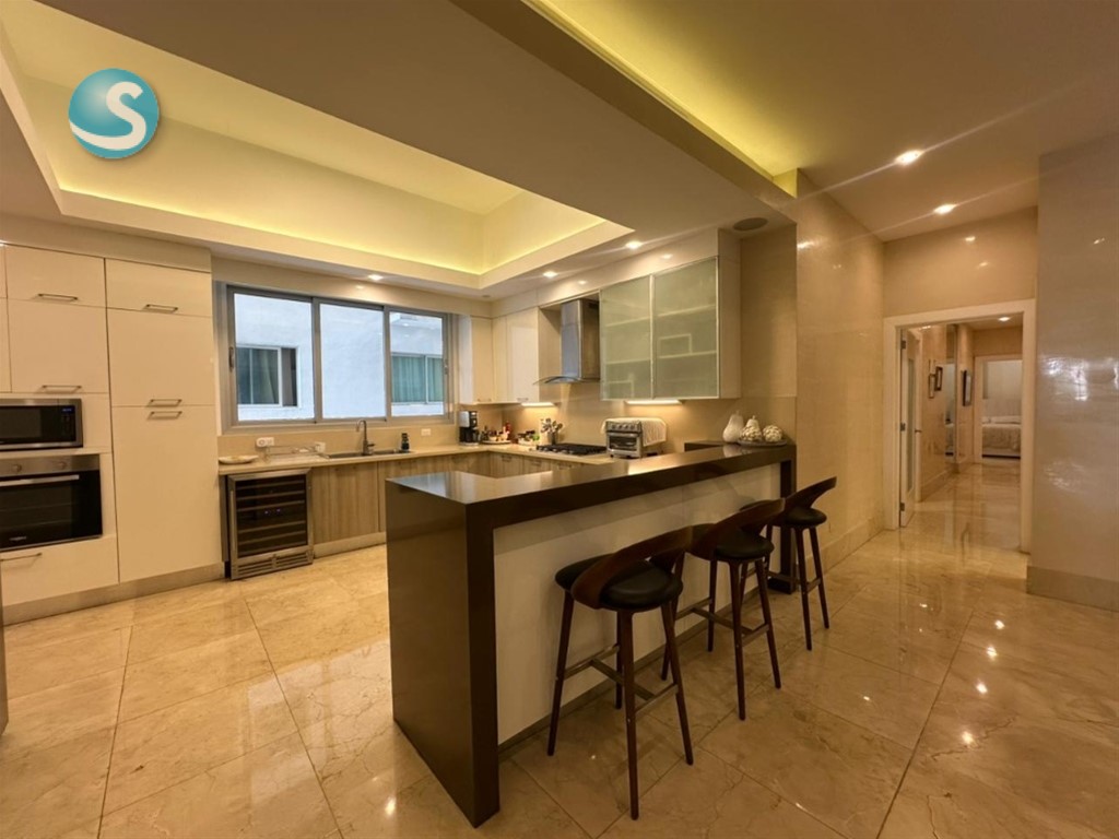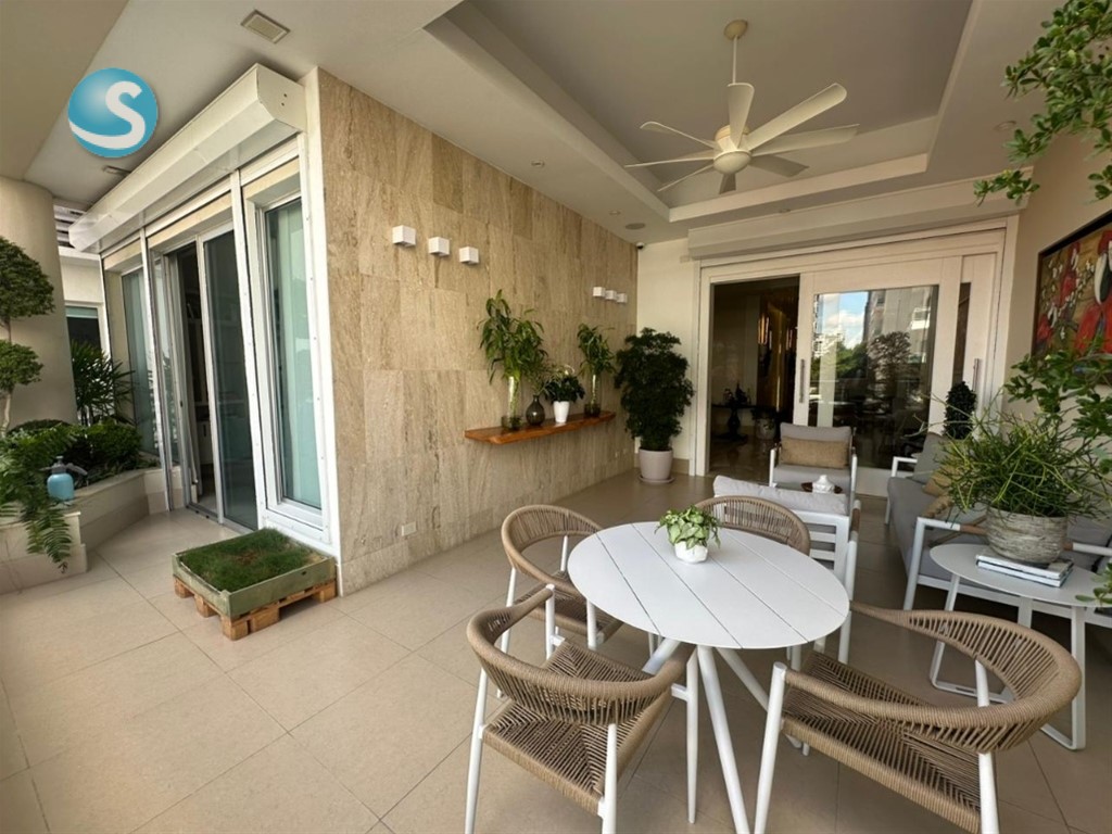 Moderno y amplio Apartamento, con balcón tipo terraza y excelente distribución, ubicado en el corazón de Piantini. Tipo: Apartamento Ubicación: Piantini Piso Alto Metraje: 378 mt2 Parqueos: 3 techados Características: * ??3 habitaciones con baño y w/closets * ??Estar Familiar * ??Baño de visita * ??Sala doble * ??Área de Comedor * ??Cocina fría * ??Cocina caliente y Area de lavado * ??Balcón tipo Terraza * ??Estudio * ??Habitación de servicio con baño * ??Pisos y baños en mármol * ??Lobby amueblado * ??Planta full AREAS SOCIALES * ??Piscina * ??Salón de eventos * ??Sala de reuniones * ??Area de Bbq * ??Área Infantil * ??Sauna * ??Gimnasio PRECIO DE VENTA US$970,000